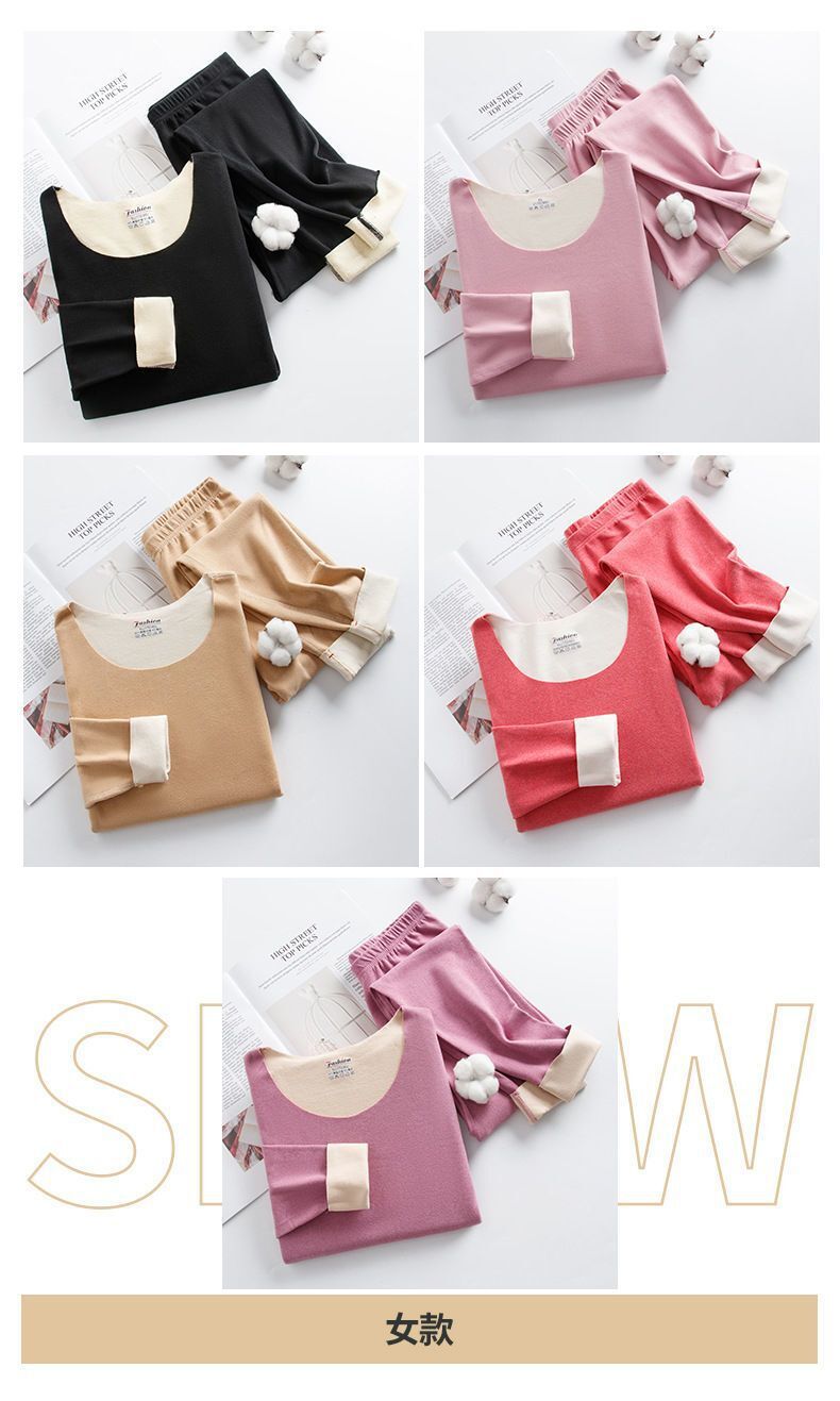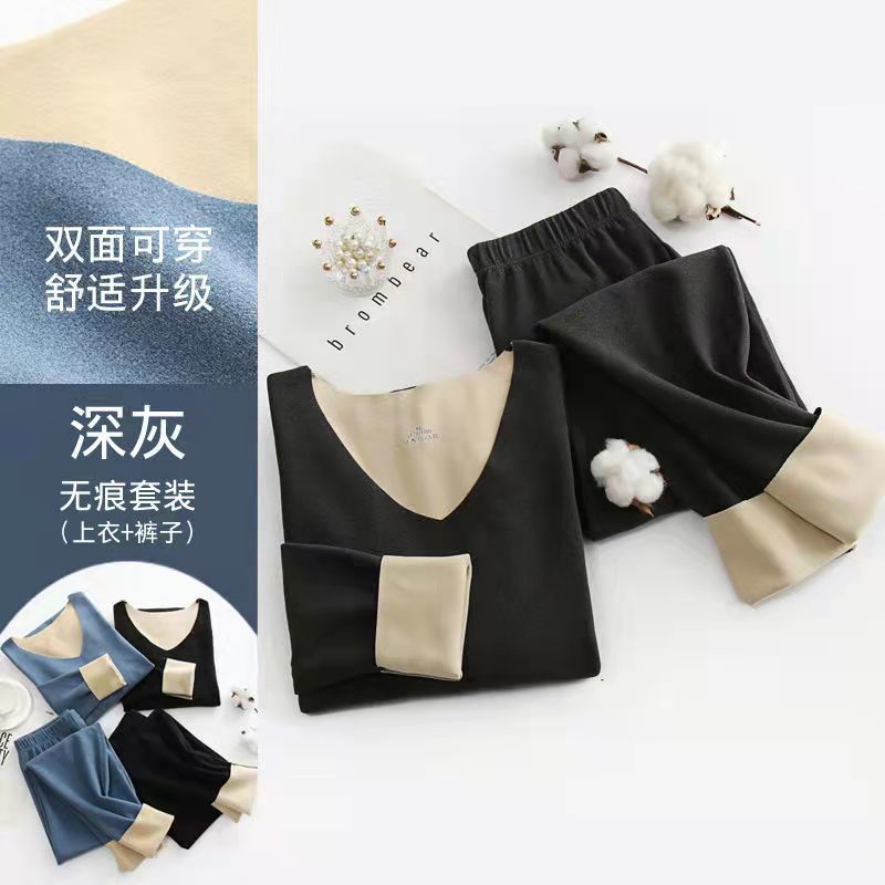 【双面磨绒 无痕速暖】亲子款AB面阳离子秋冬加绒保暖内衣套装无痕圆领修身 2套起拍