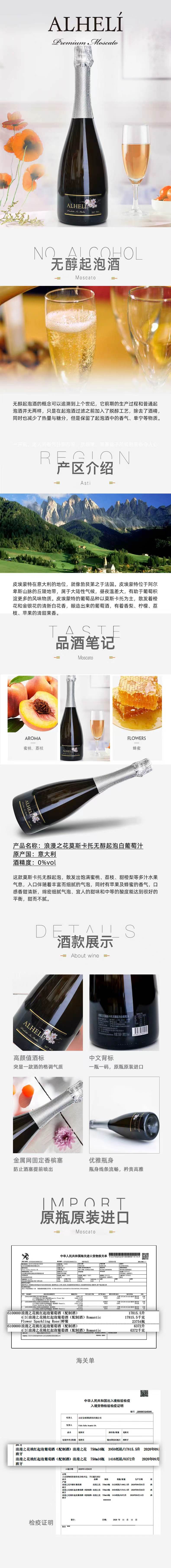 浪漫之花莫斯卡托无醇起泡白葡萄汁