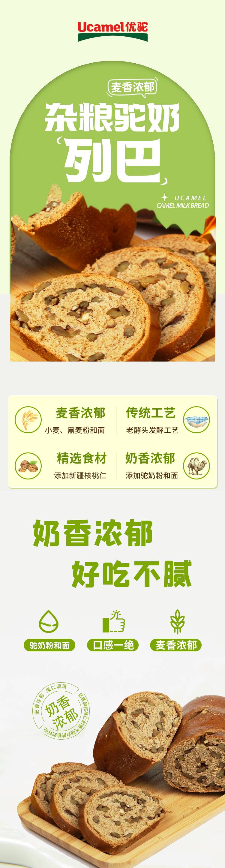 【预售】新疆工厂直邮,优驼驼奶列巴 老酵头发酵,0反式脂肪酸,大块核桃仁,麦香味浓!25天保质期