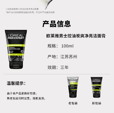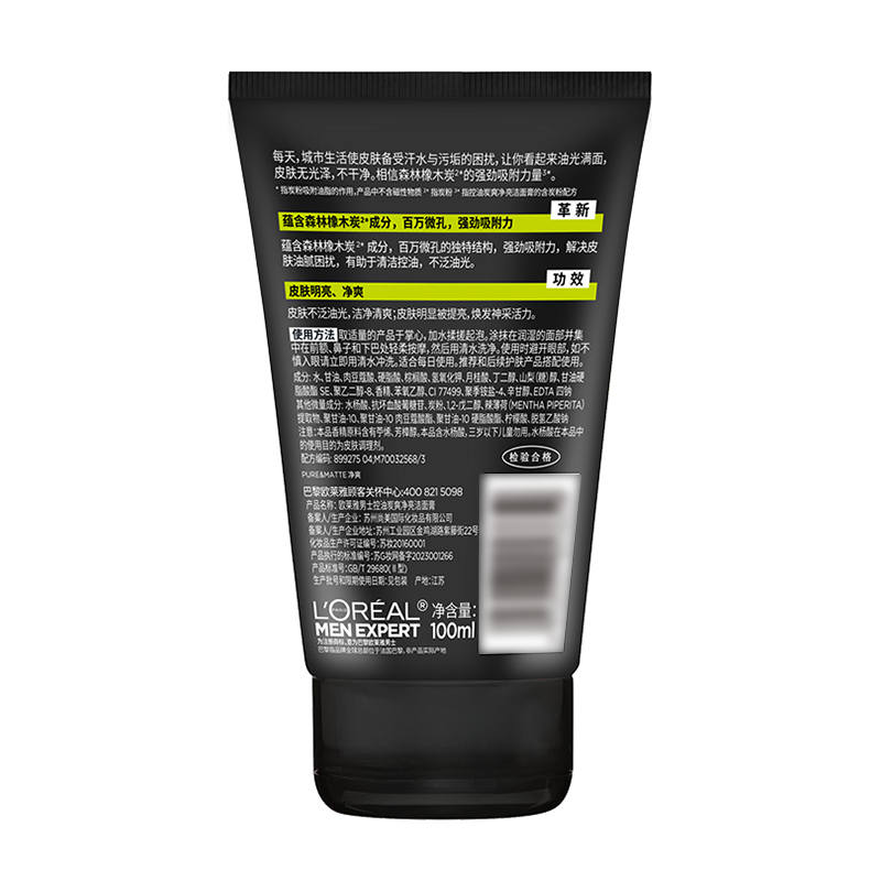 【MDL】欧莱雅男士控油炭爽净亮洁面膏100ml