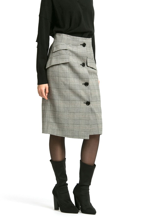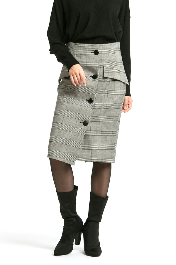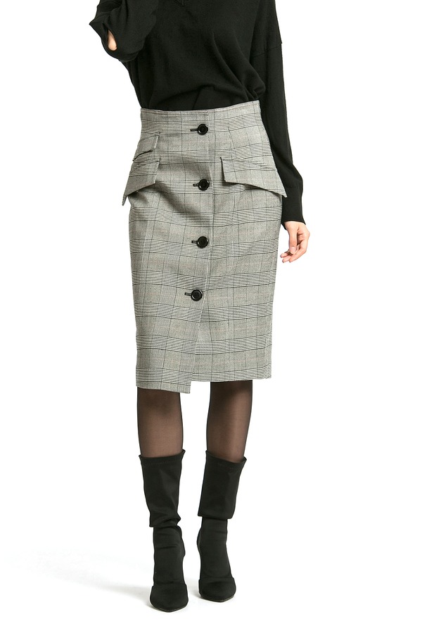 LILY 复古格子排扣包臀裙 354