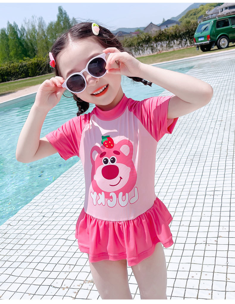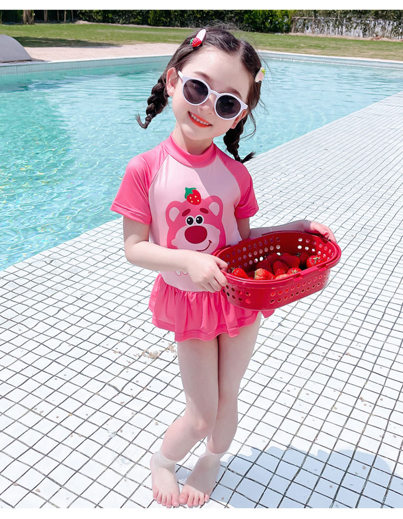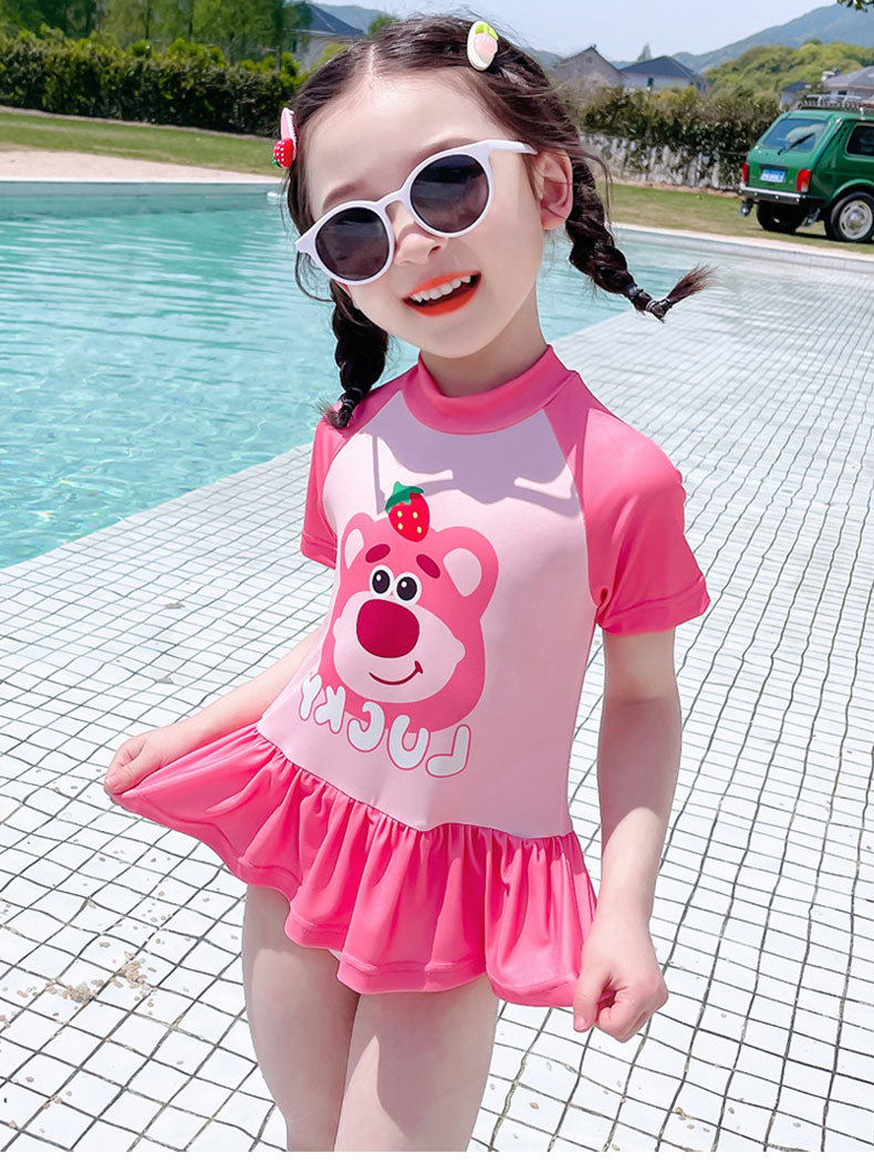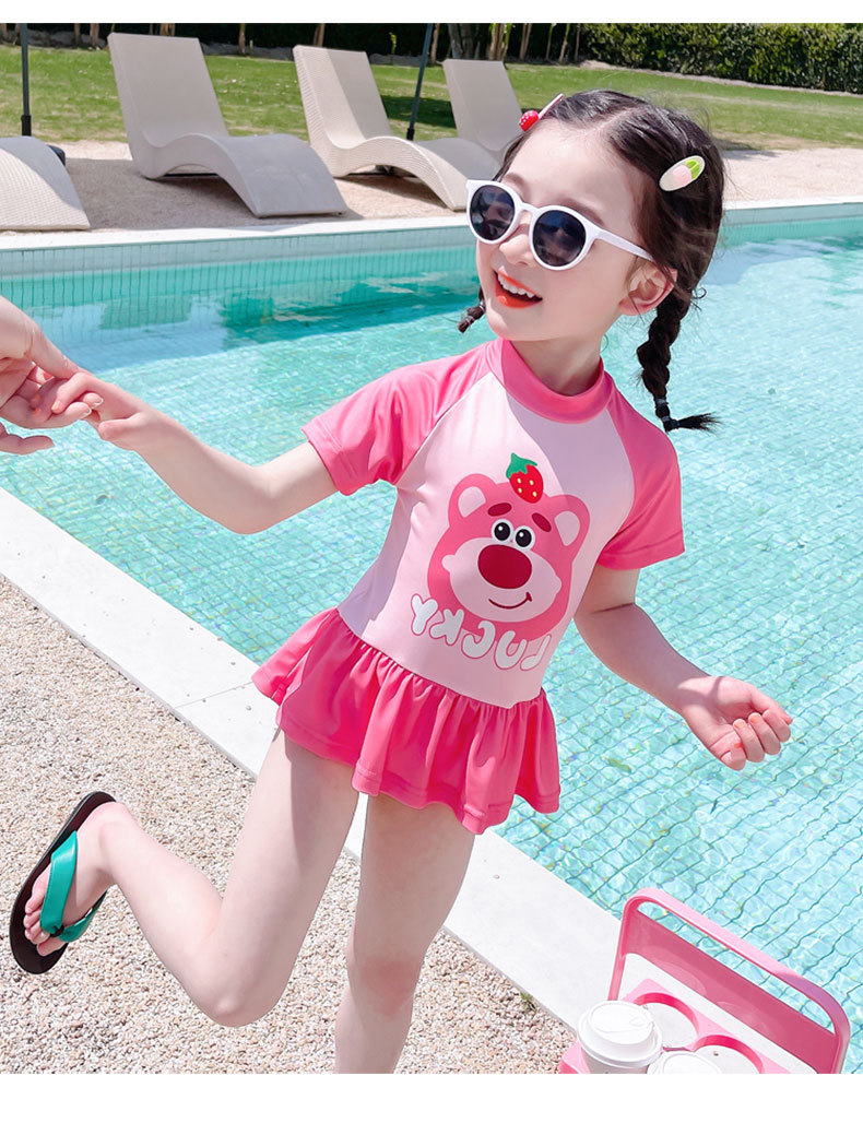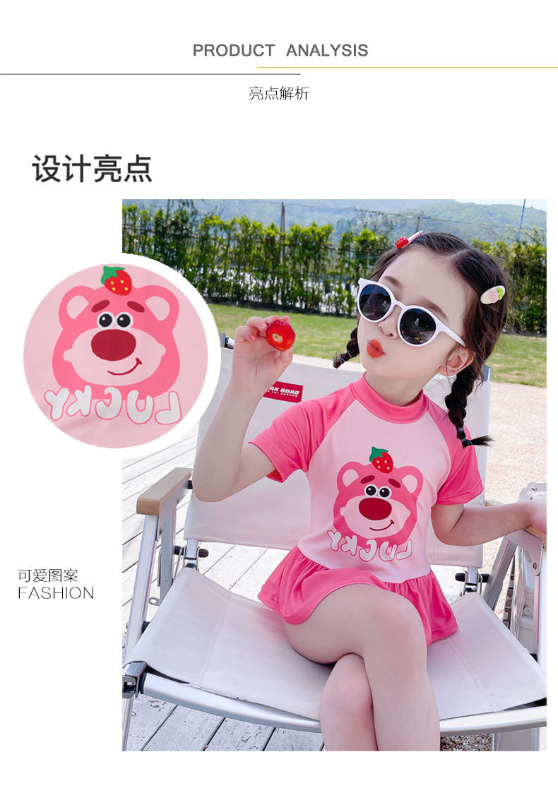 【可盐可甜!草莓熊裙连体泳装】舒适柔软简约大方,手感细腻亲肤透气,可爱图案点缀美丽的你,女童夏季洋气新款中小童可爱潮女宝宝潮