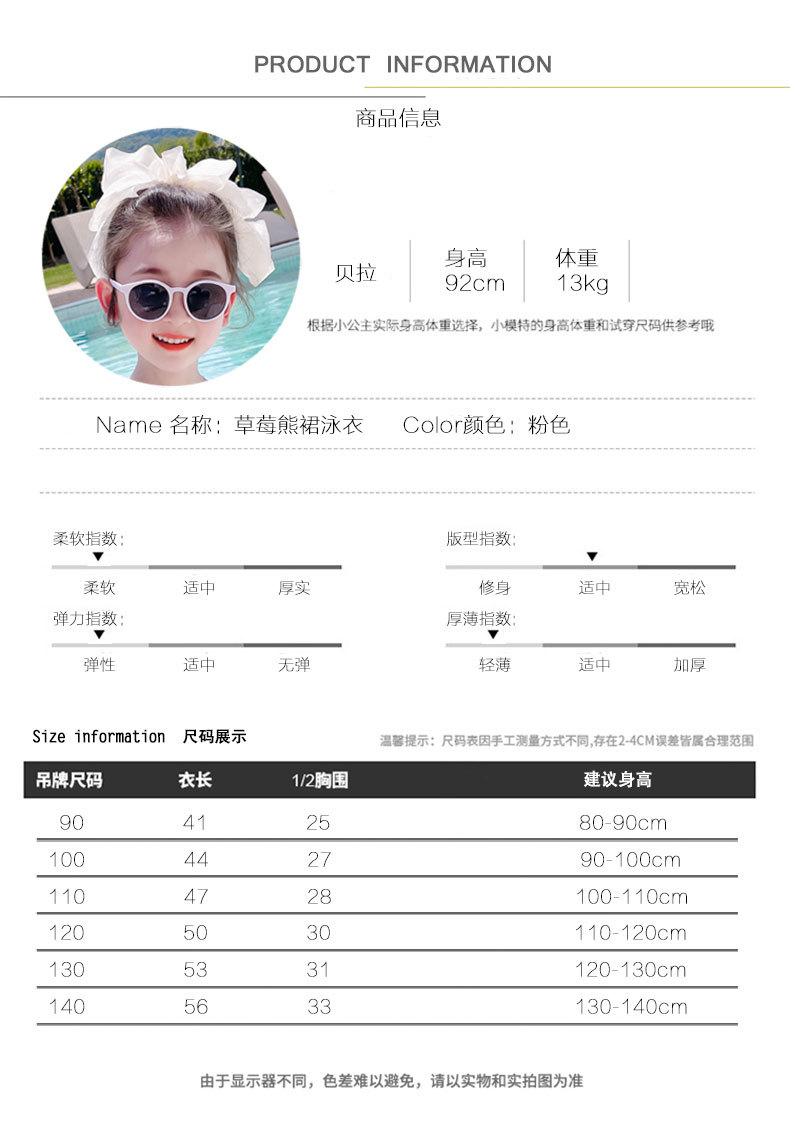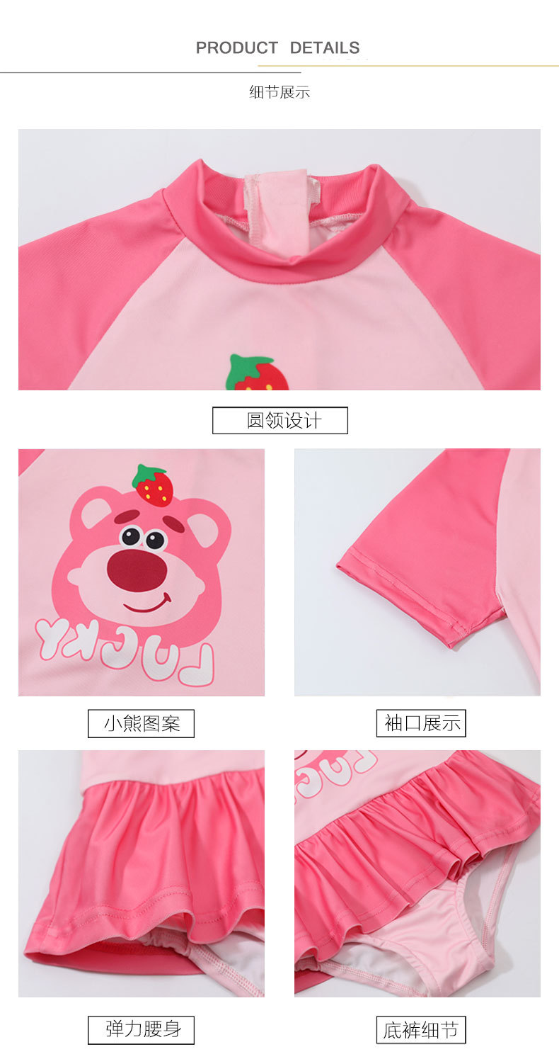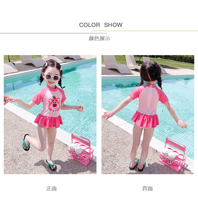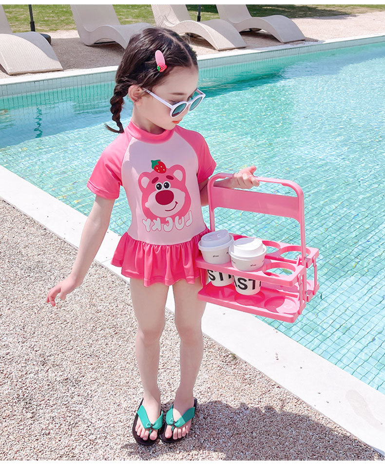 【可盐可甜!草莓熊裙连体泳装】舒适柔软简约大方,手感细腻亲肤透气,可爱图案点缀美丽的你,女童夏季洋气新款中小童可爱潮女宝宝潮