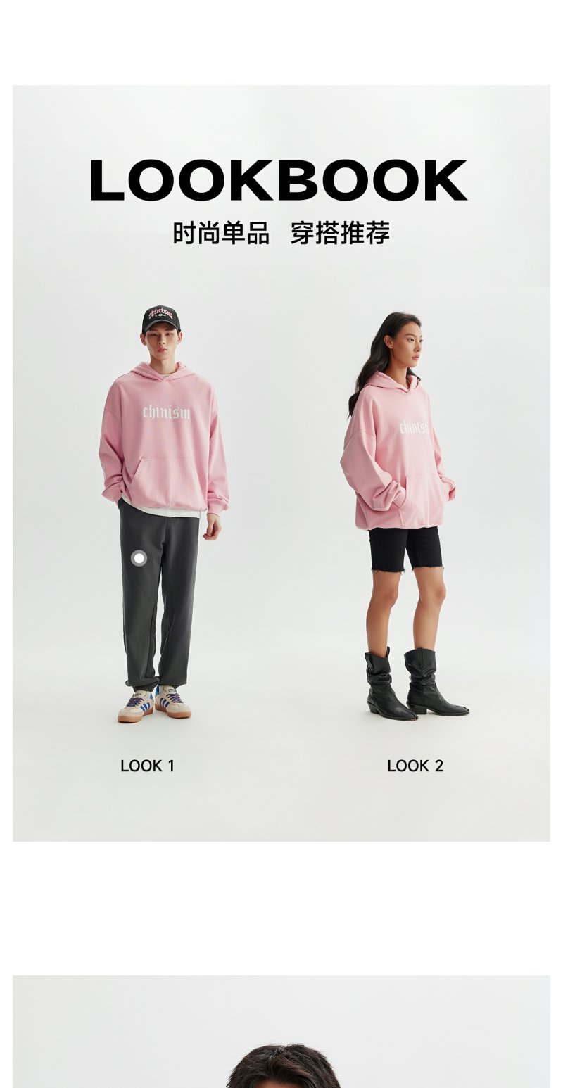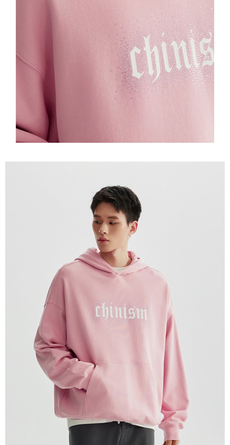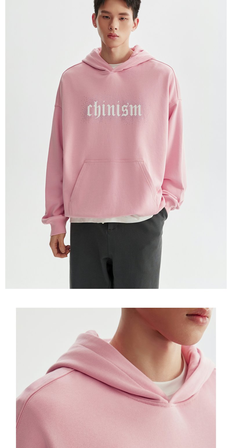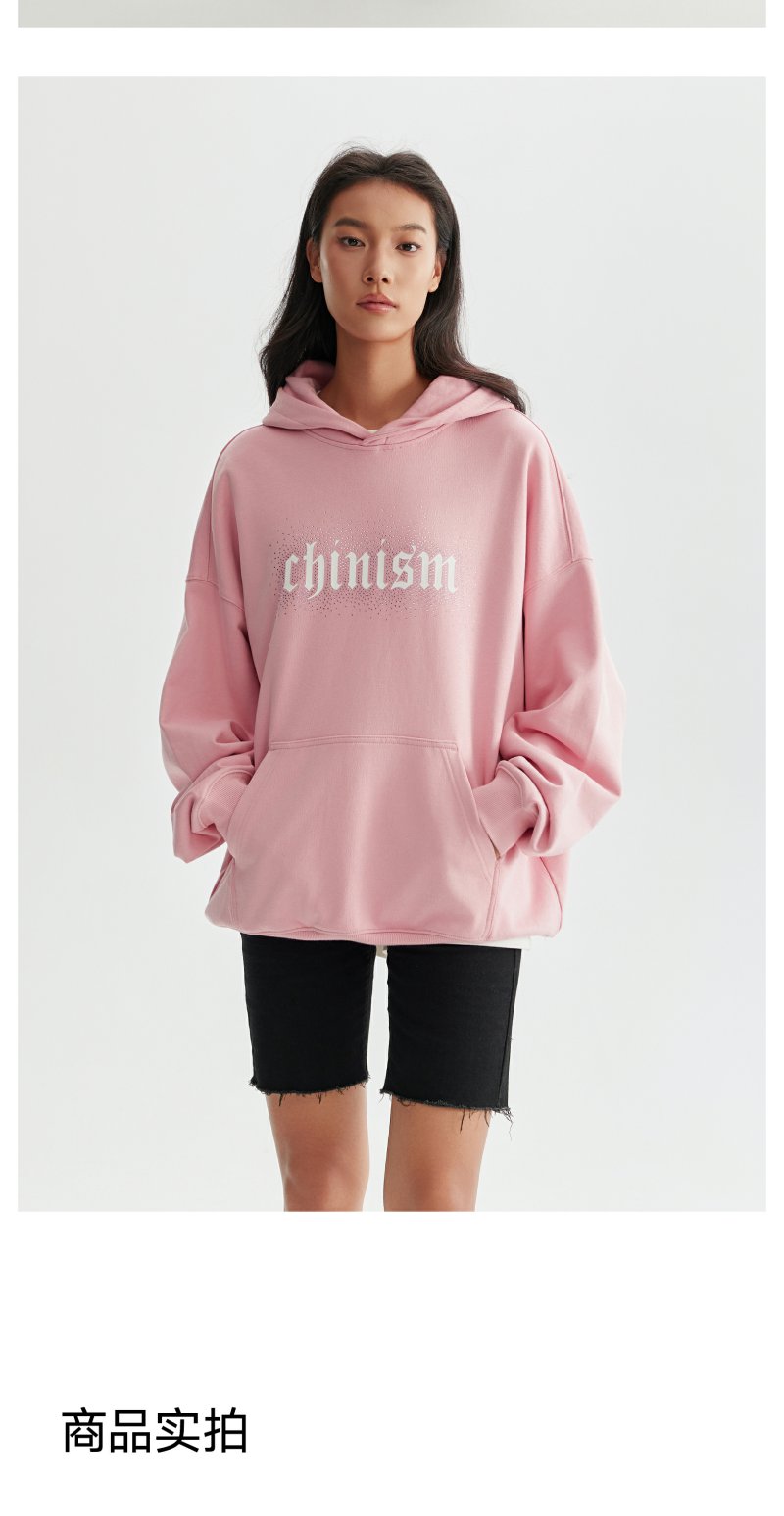 CHINISM折扣季 粉色烫钻连帽卫衣外套男秋季新款宽松潮牌套头帽衫 商品图4
