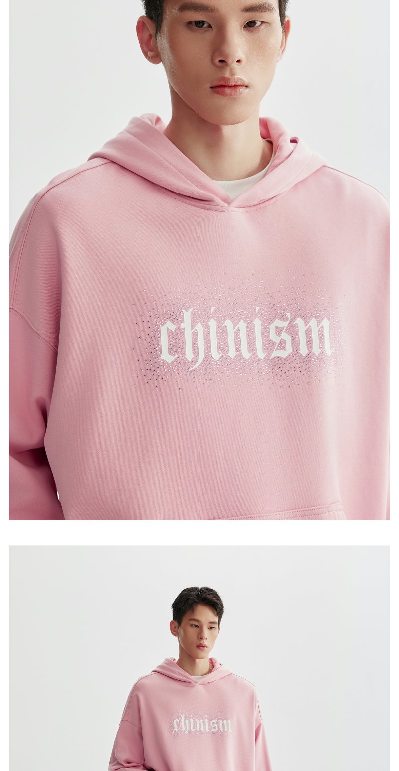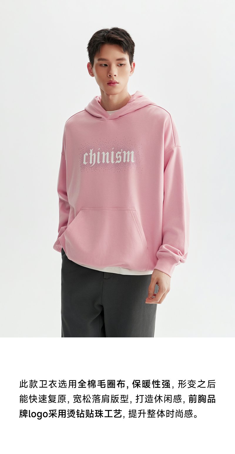 CHINISM折扣季 粉色烫钻连帽卫衣外套男秋季新款宽松潮牌套头帽衫 商品图0