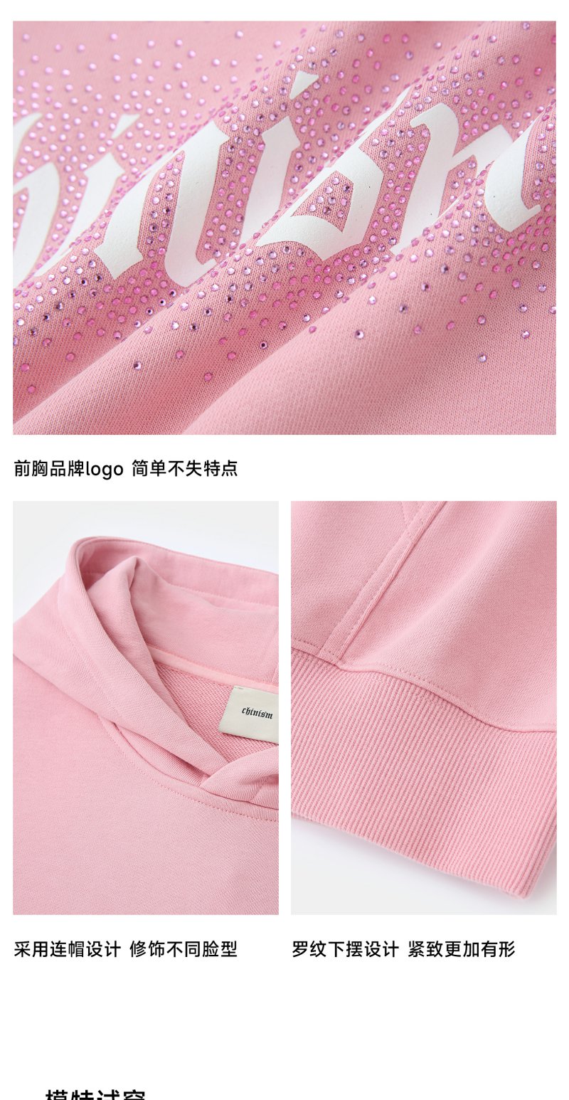 CHINISM折扣季 粉色烫钻连帽卫衣外套男秋季新款宽松潮牌套头帽衫 商品图3