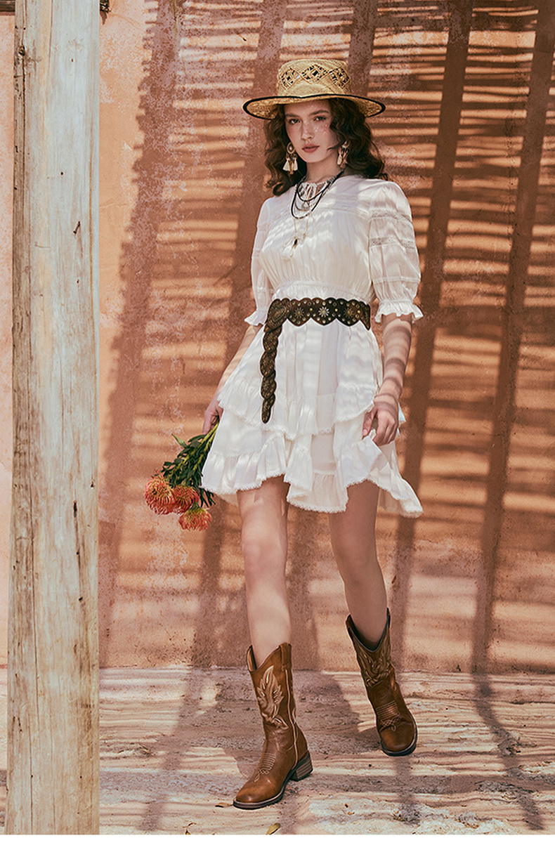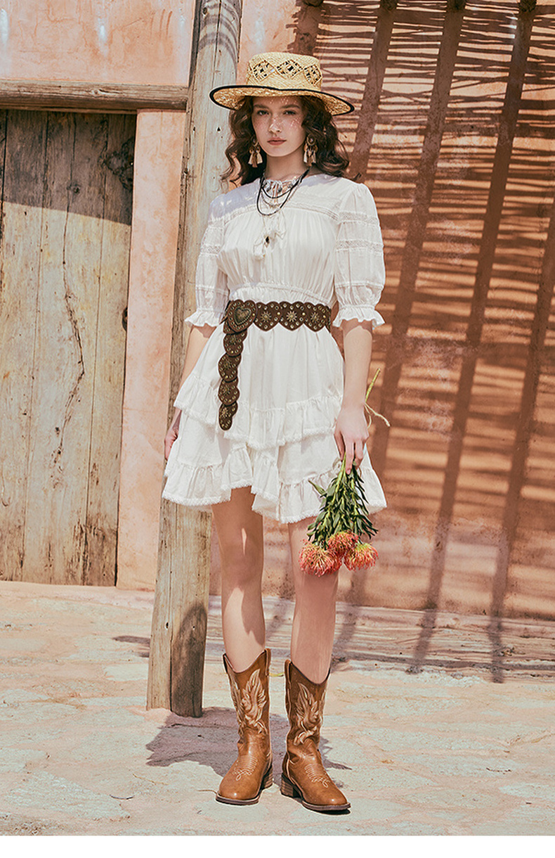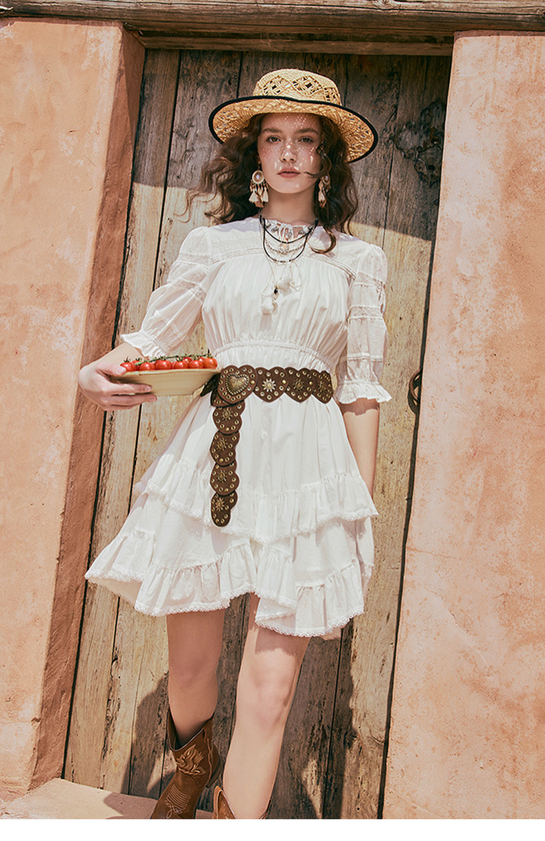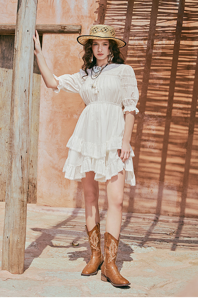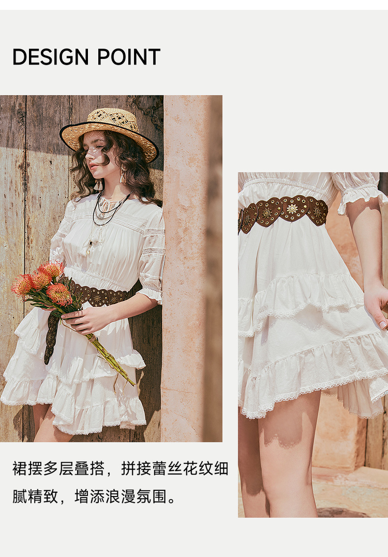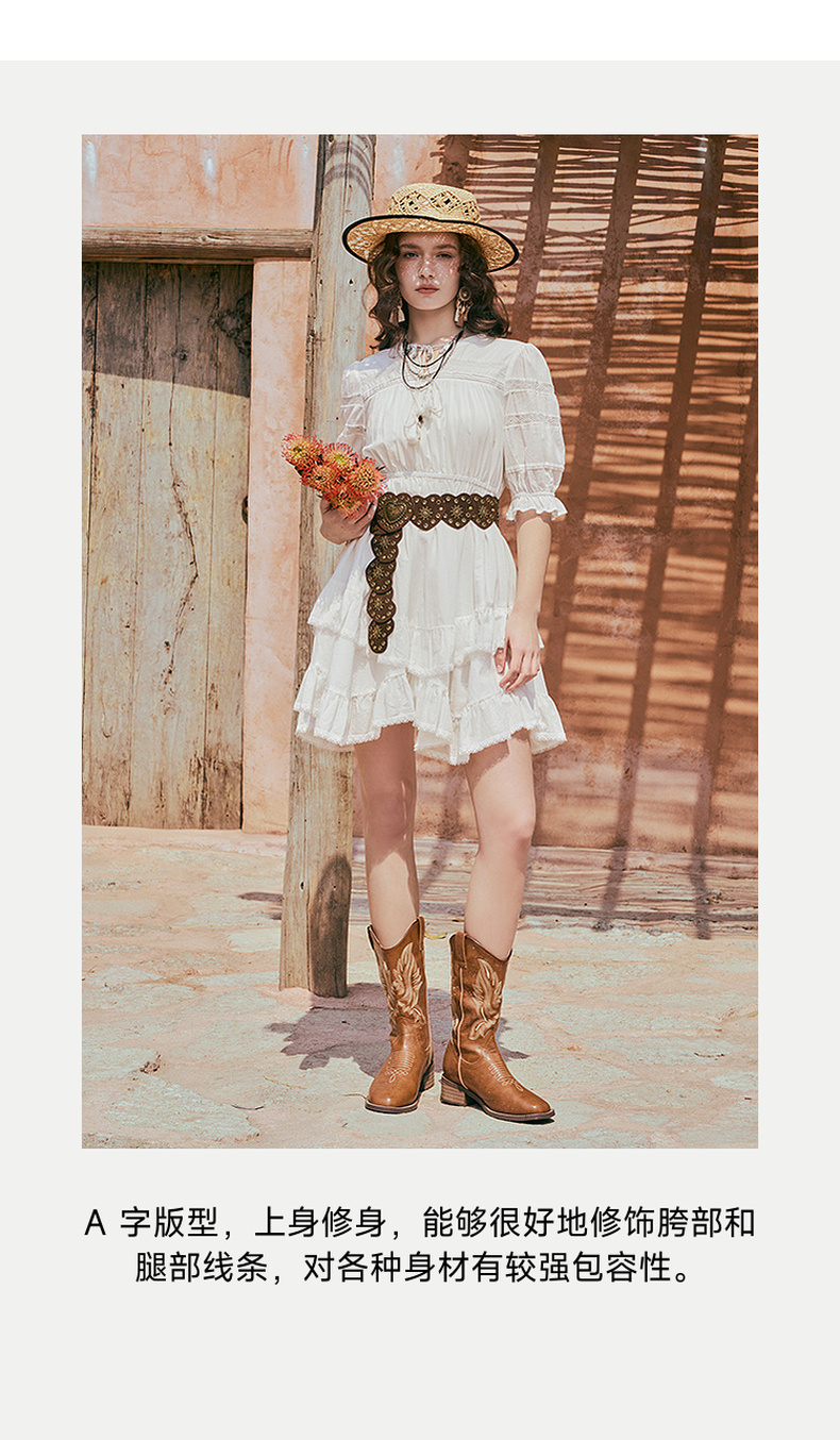 两三事琉璃糖霜2025夏季新款波西米亚风不规则荷叶边泡泡袖连衣裙