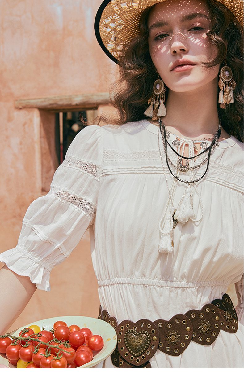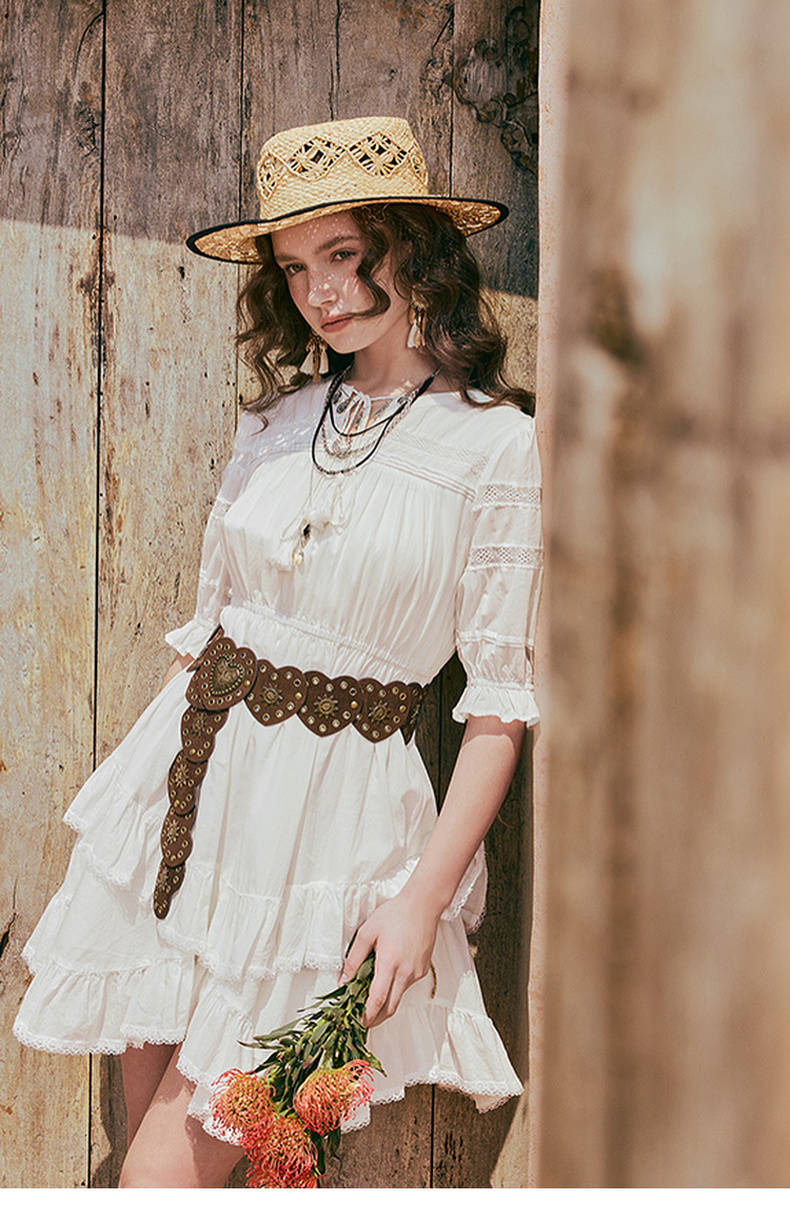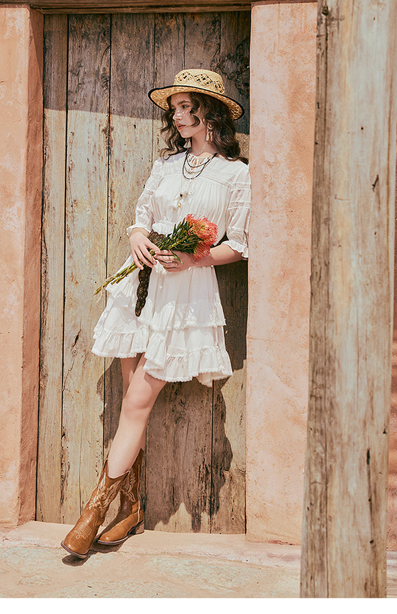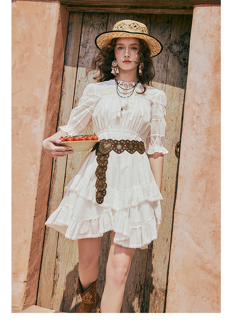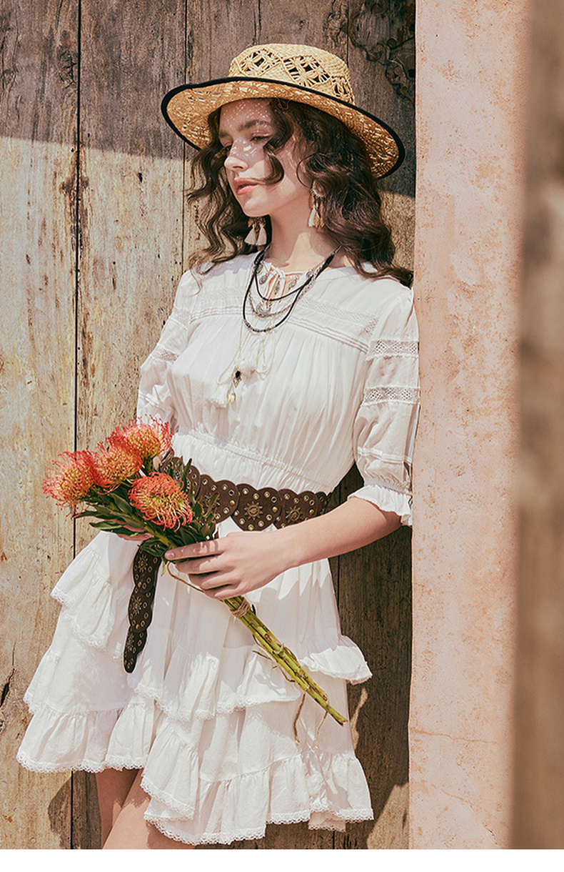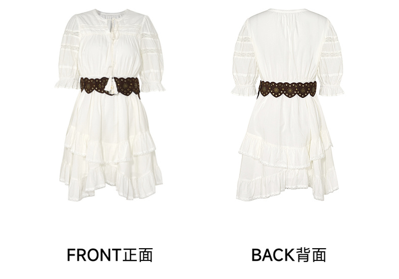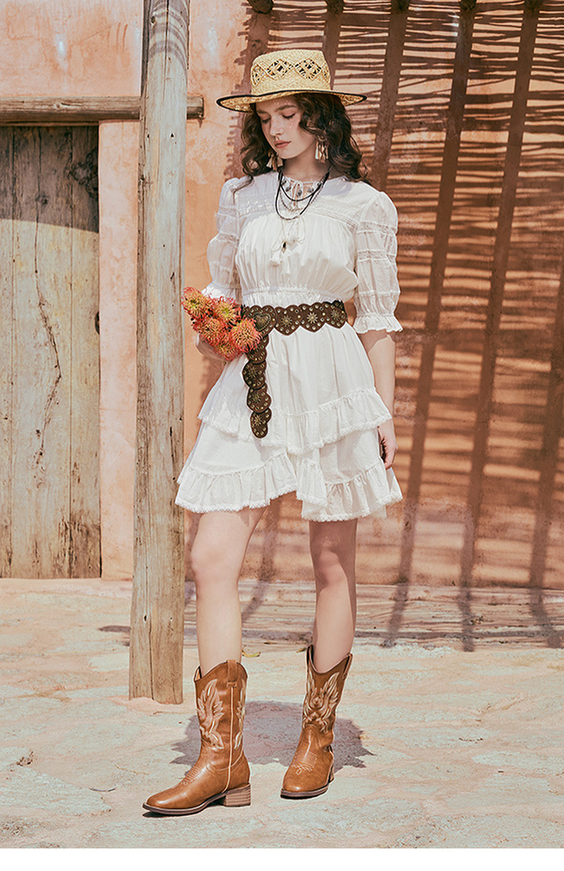 两三事琉璃糖霜2025夏季新款波西米亚风不规则荷叶边泡泡袖连衣裙