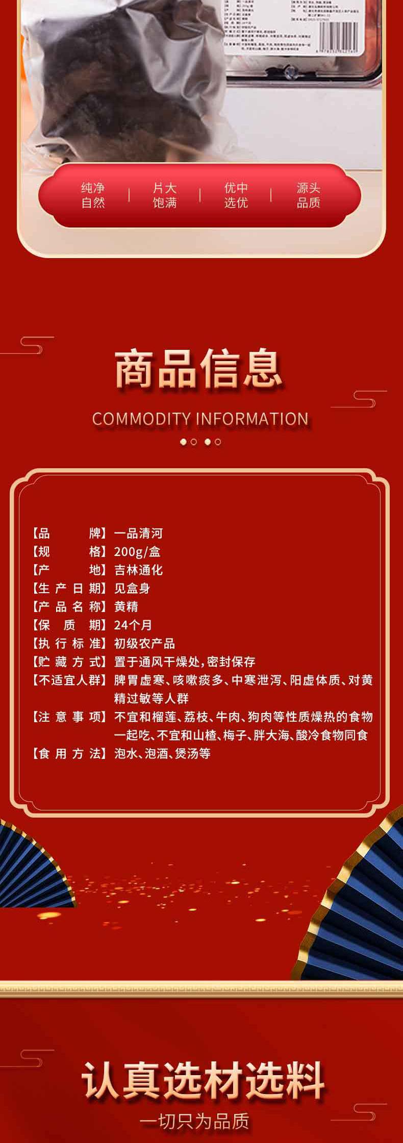 【自营】一品清河 黄精200g九制黄精 YPQHHJ200G