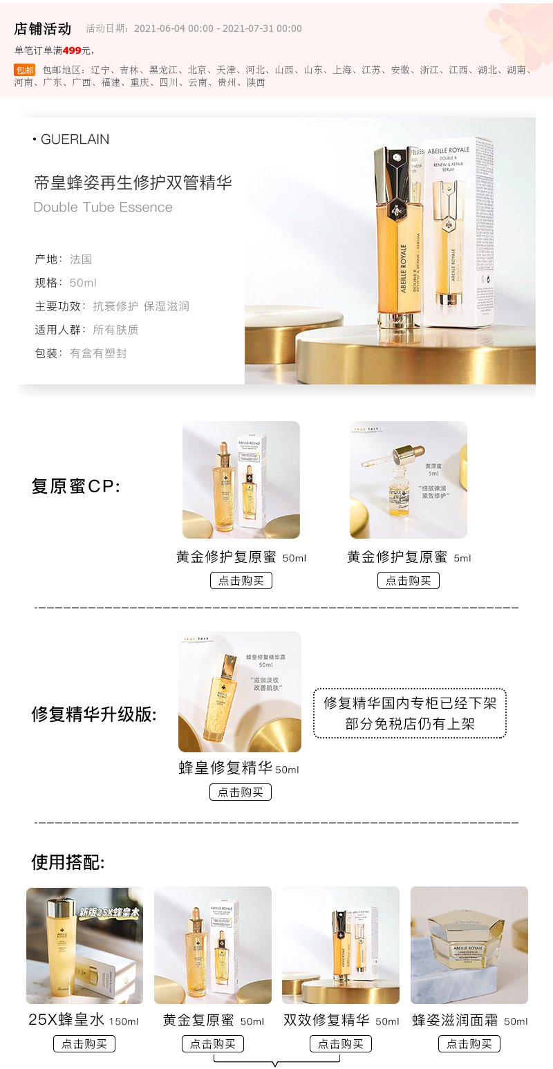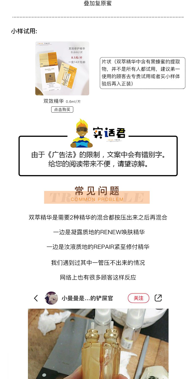 娇兰Guerlain 帝皇蜂姿双效精华复原蜜双萃50ml 再生修护双管精华