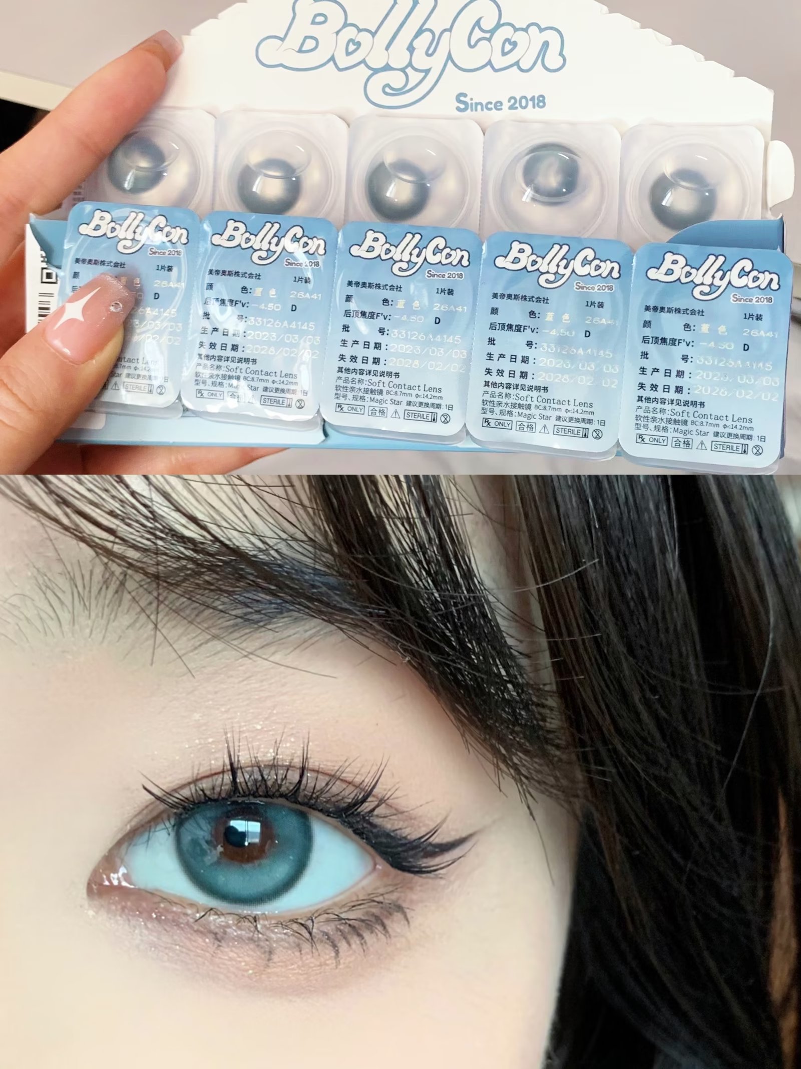 【日抛】小海星 Bollycon 中直径14.2 着色直径13.2 (同品牌多盒更划算,选款色板在详情页内)基弧8.7 蓝色金粉美瞳