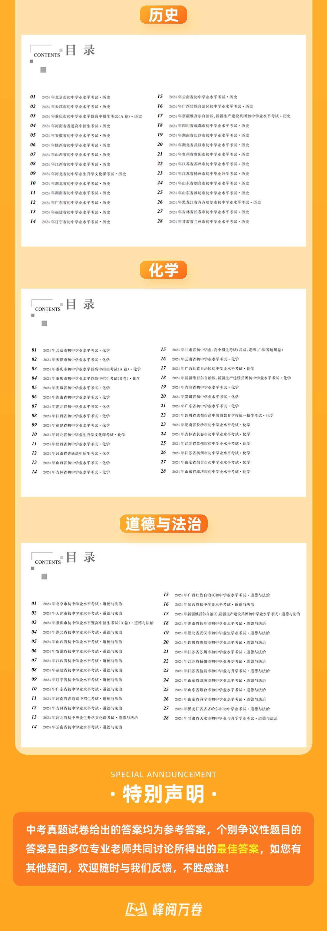 【张雪峰书籍】峰阅万卷 2025新版 中考真题汇编 科目任选