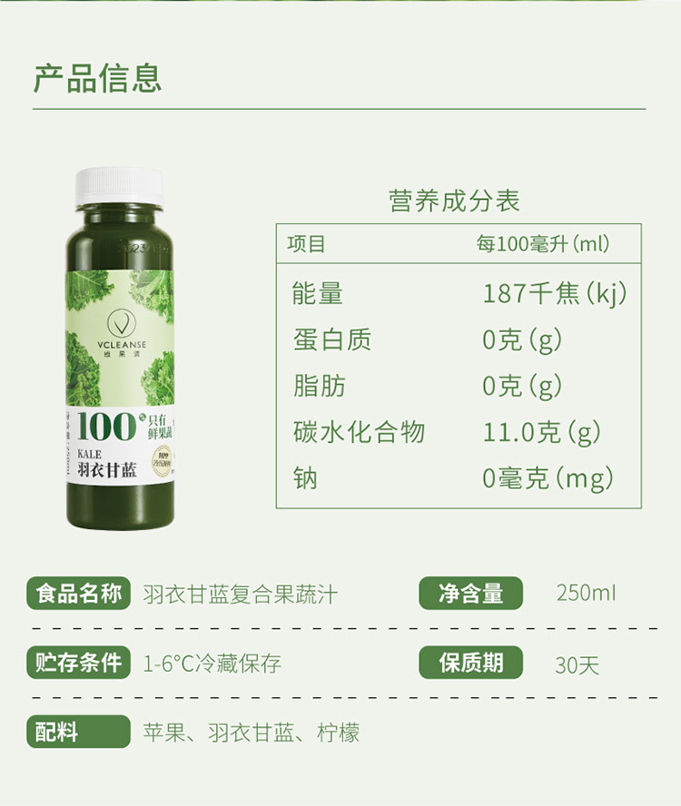 羽衣甘蓝复合果蔬汁250ml*6