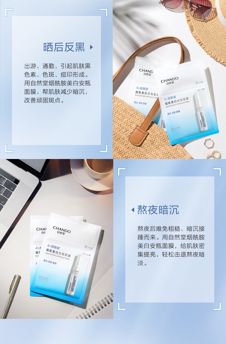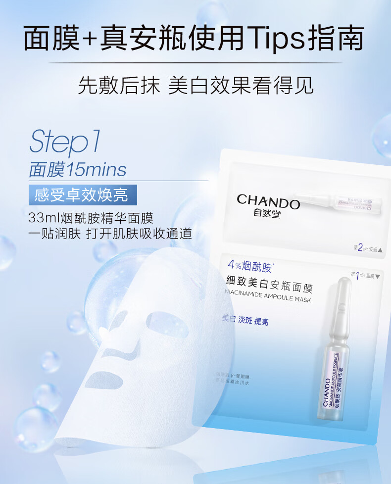自然堂(CHANDO)烟酰胺细致美白安瓶面膜*5片(美白淡斑提亮肌肤改善泛红敏肌)100010113716