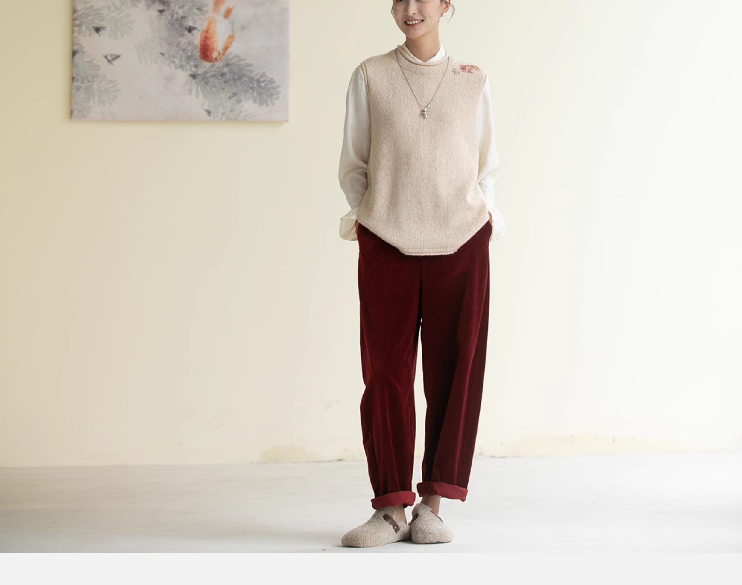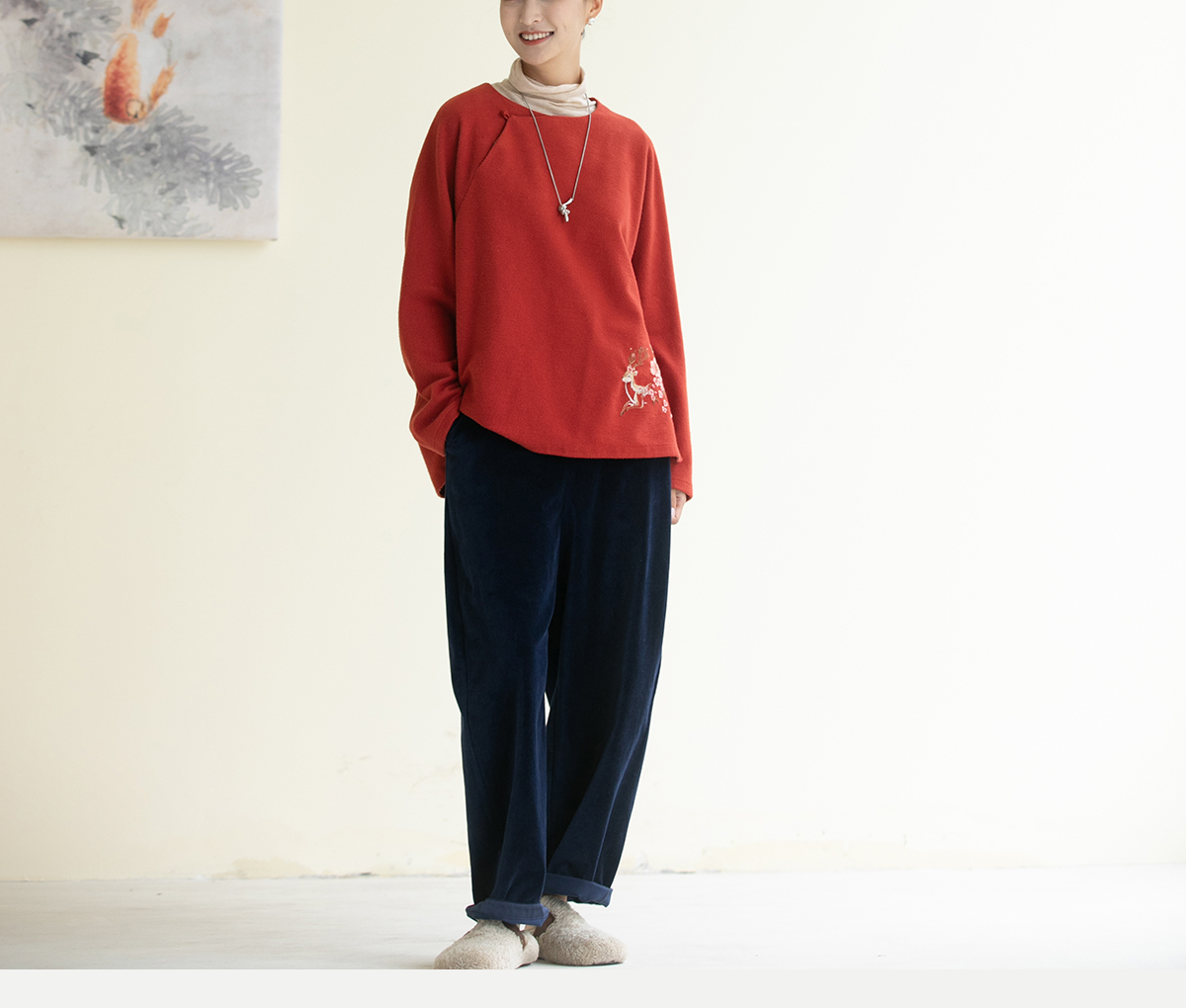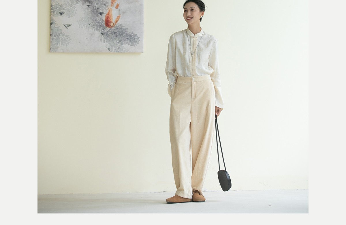 牧衣游原创 绒感棉净色裤子女新款百搭宽松柔软舒适休闲裤 隐游