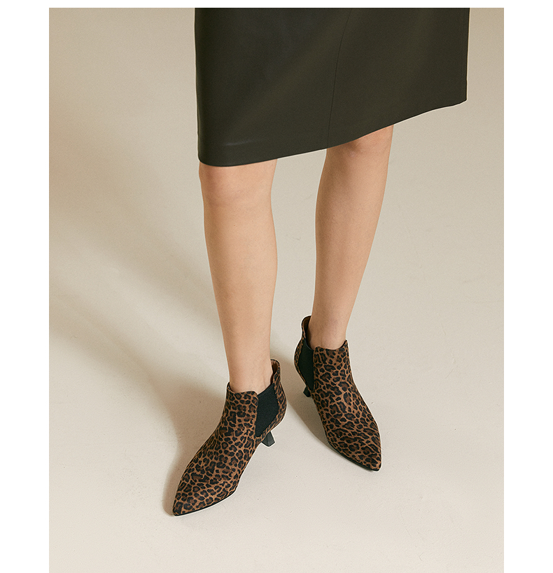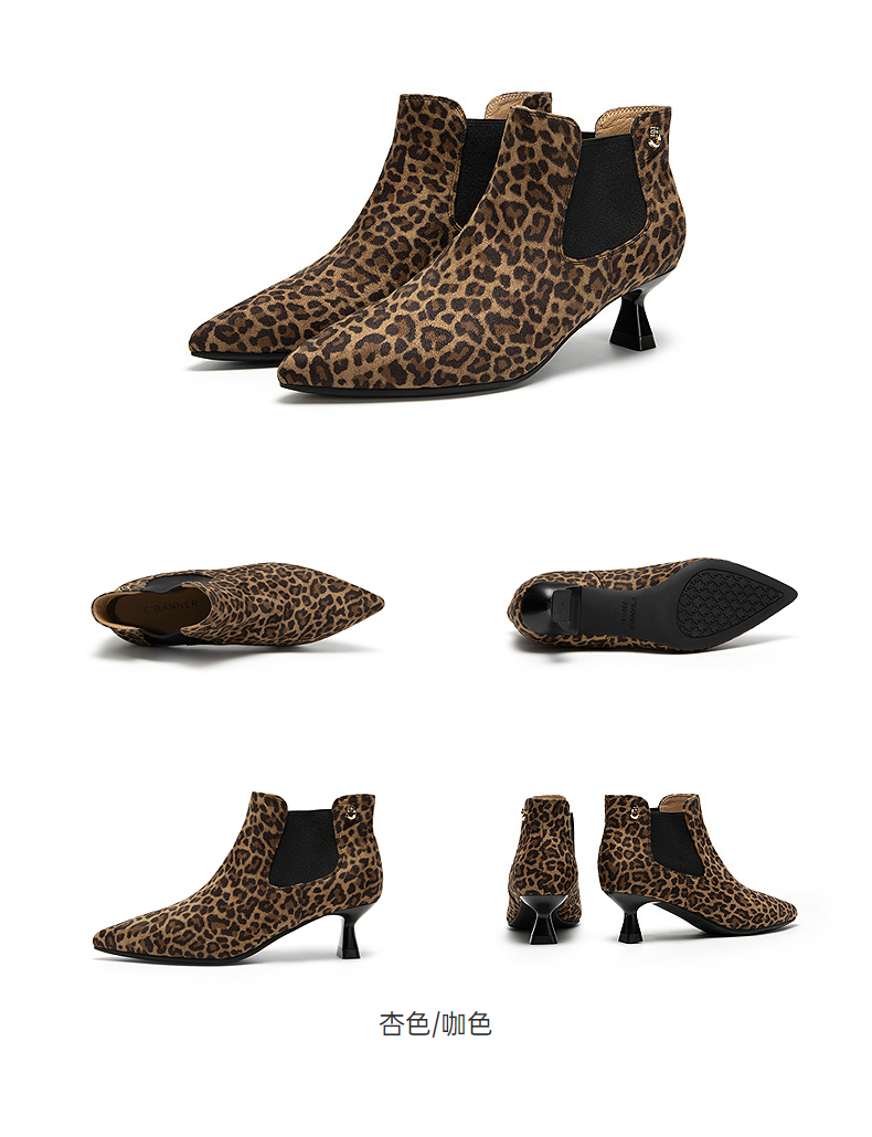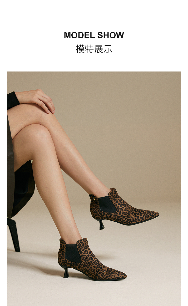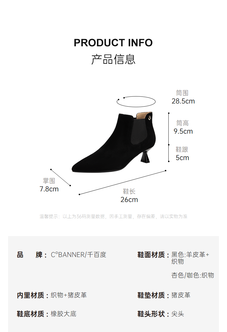 千百度复古尖头中跟时装靴女气质细高跟通勤踝靴A25586871