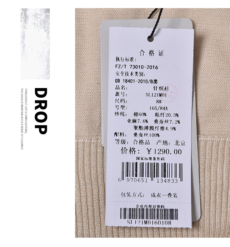 圣三利女装 桑蚕丝拼接针织开衫SL121M01