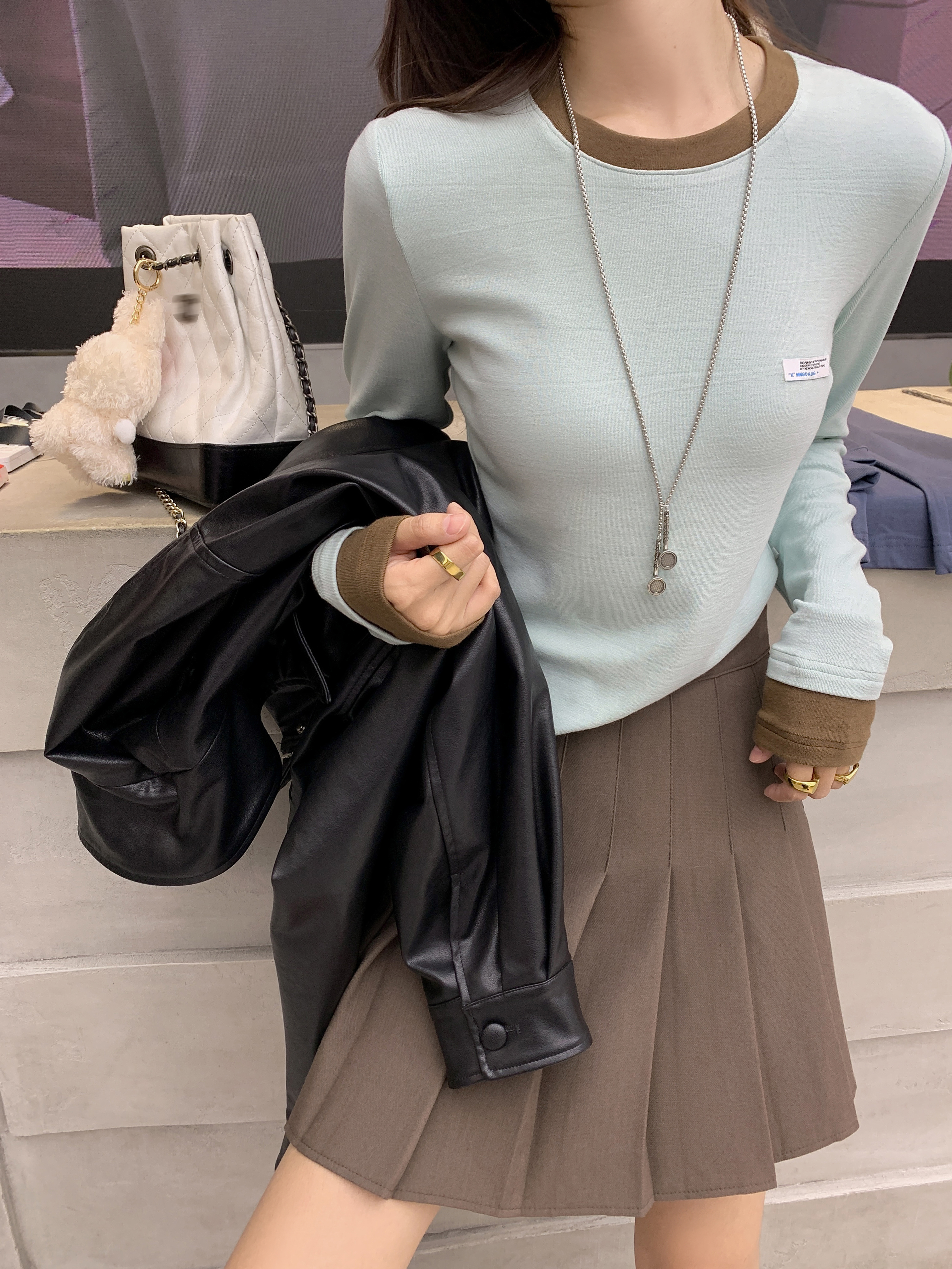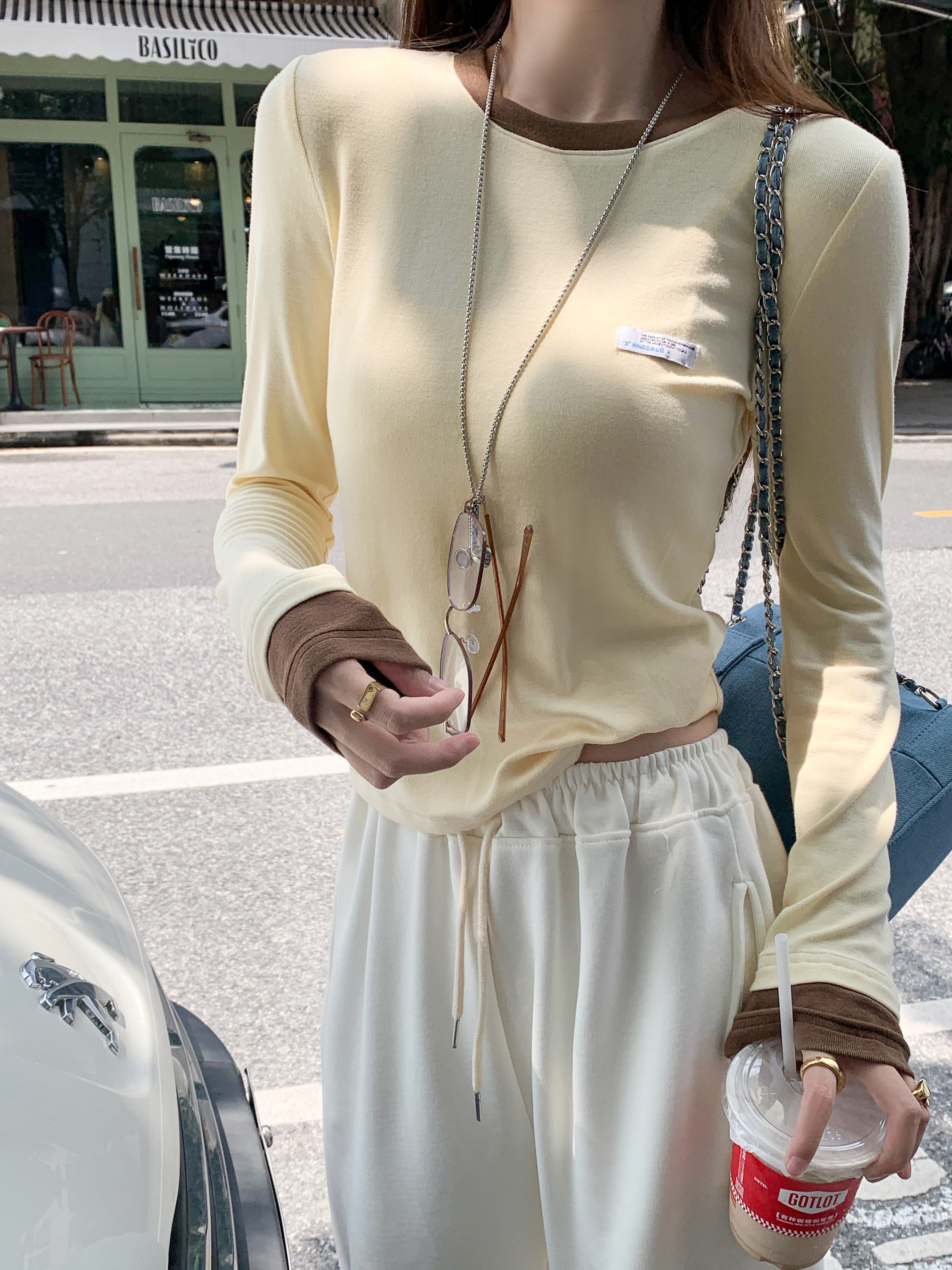 <曾小咸推荐>【秋日手账】3色撞色边打底衫