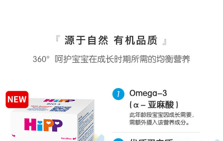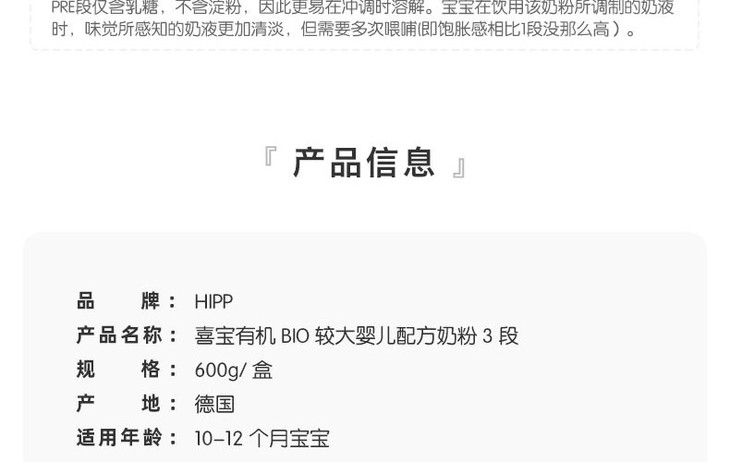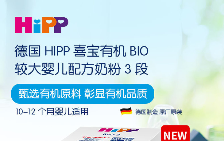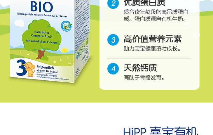HIPP喜宝有机BIO较大婴儿配方奶粉3段600克10-12个月