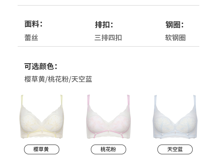 都市丽人内衣中厚刺绣三排扣无钢圈3/4杯常规文胸LB319A