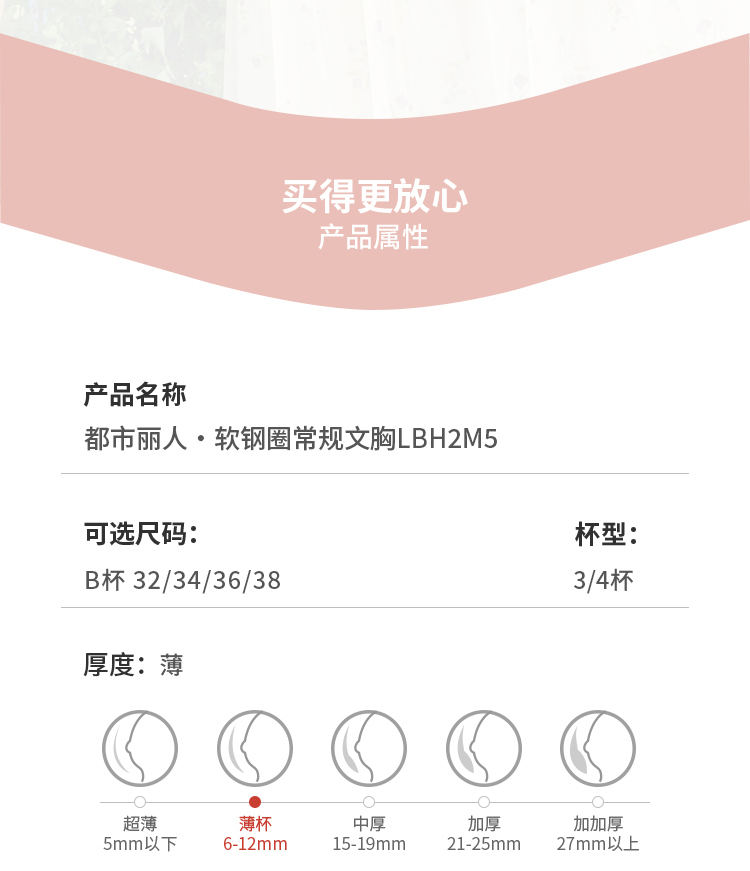 都市丽人自然舒适B杯常规内衣薄锁边软钢圈常规文胸LBH2M5
