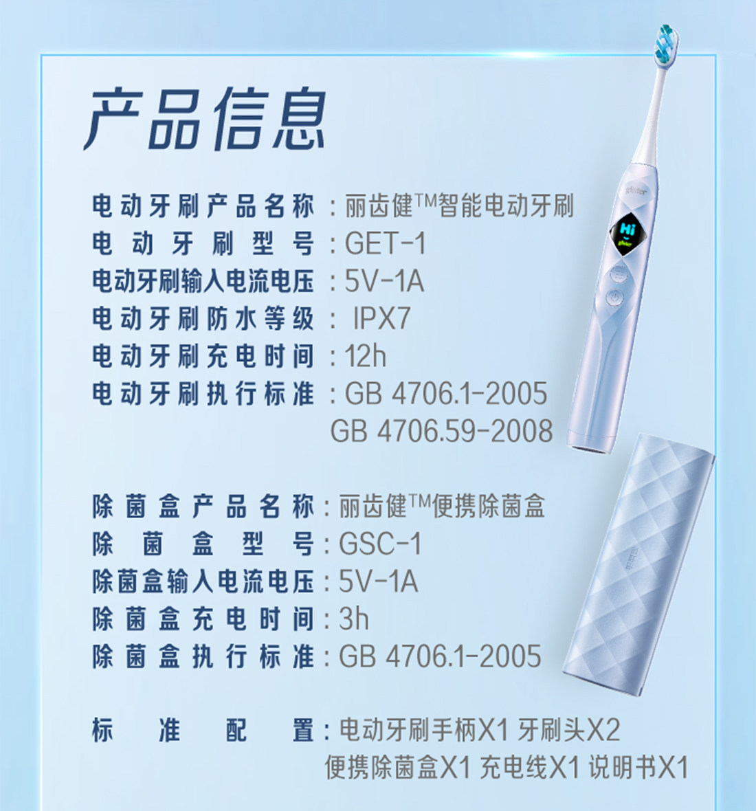 安利丽齿健智能电动牙刷 晴空蓝 夜空蓝[智能小蓝钻]
