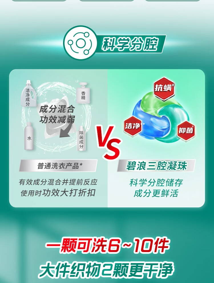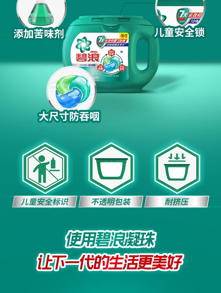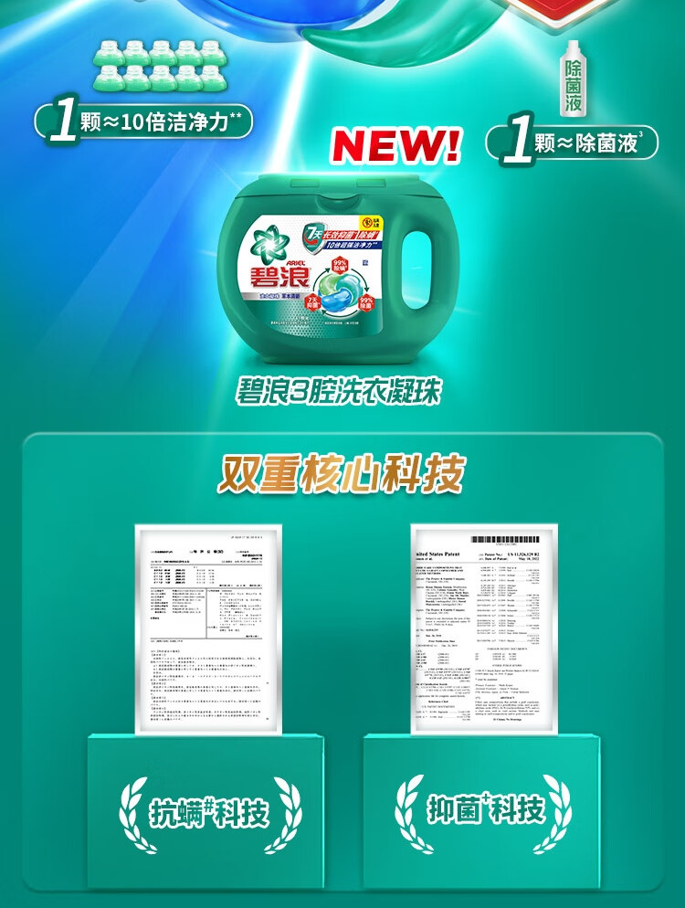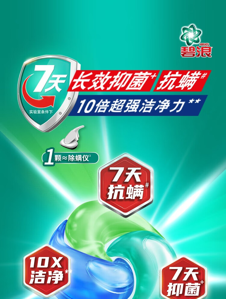 碧浪洗衣凝珠53颗家庭装7天抑菌三重酵素十倍洁净力抗螨持久留香 100063120697