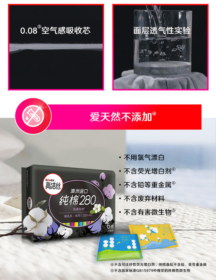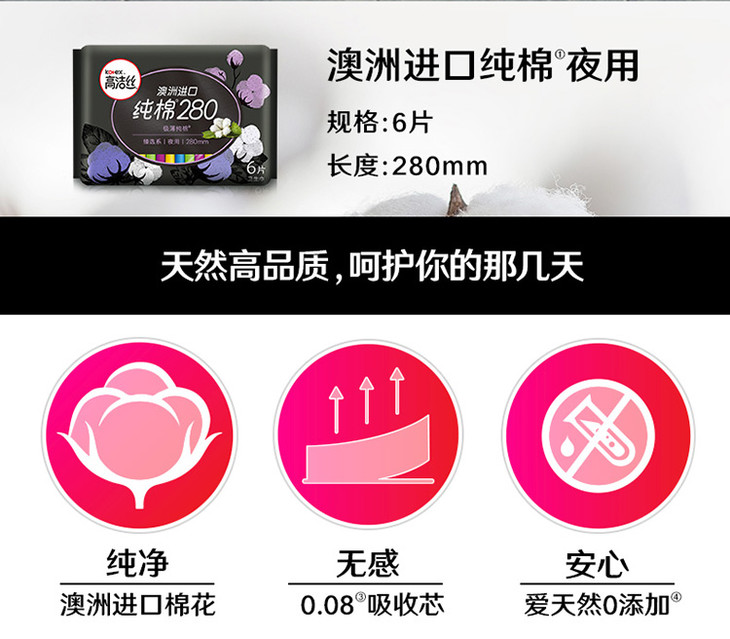 高洁丝臻选系列丝薄纯棉卫生巾日用280mm6片