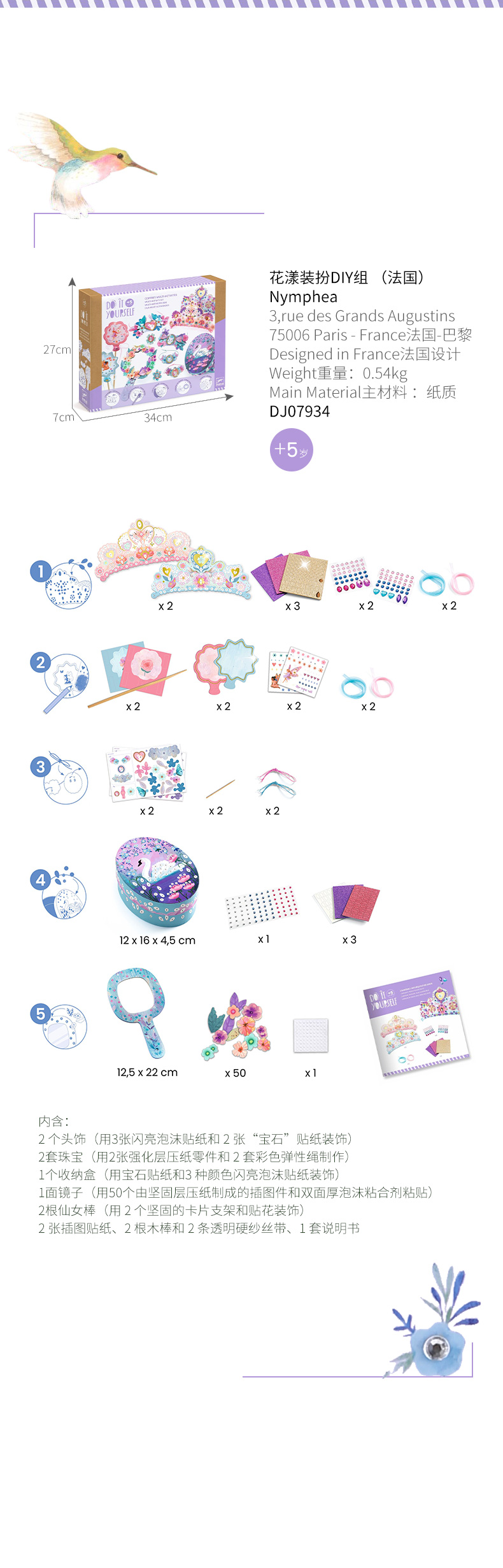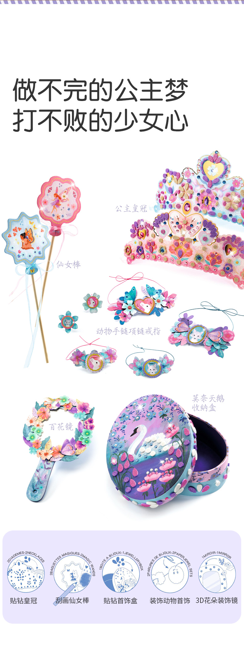 手工制作DIY花漾装扮套装黏贴画皇冠头饰公主女孩礼物5岁