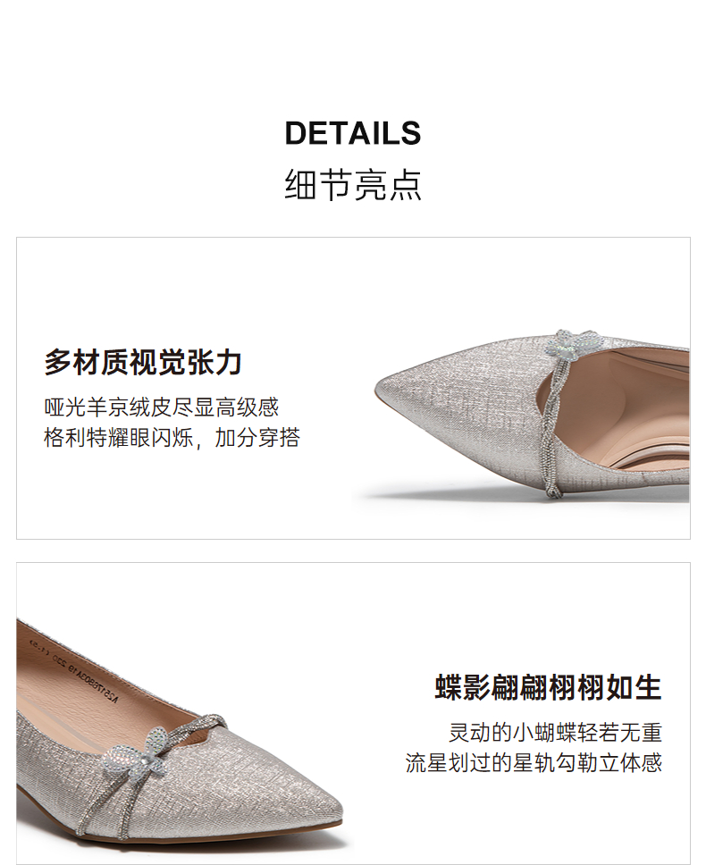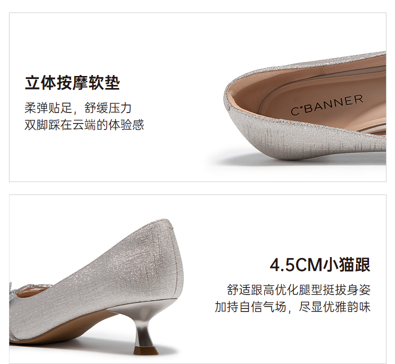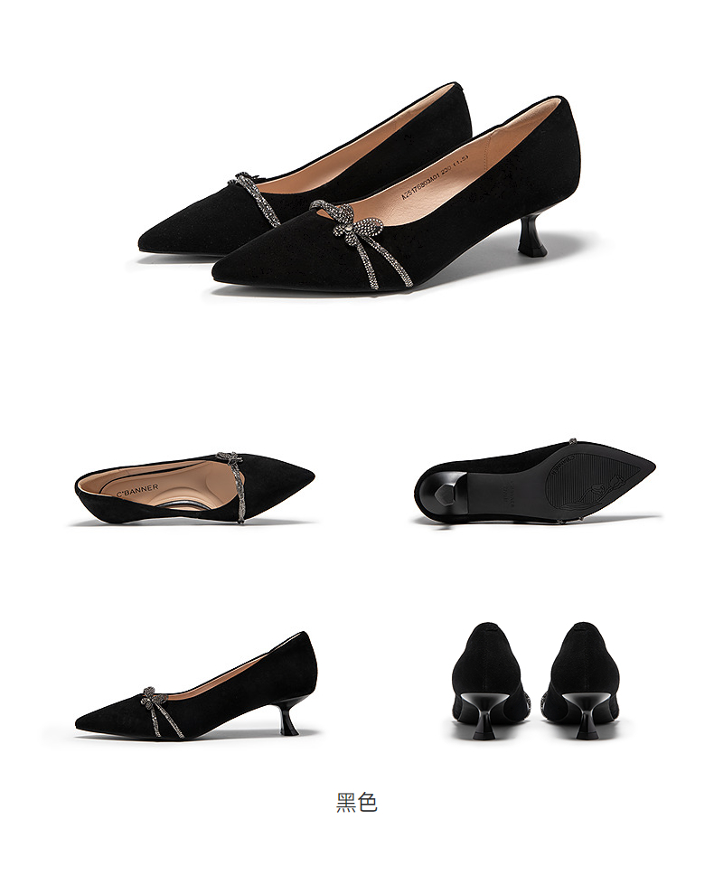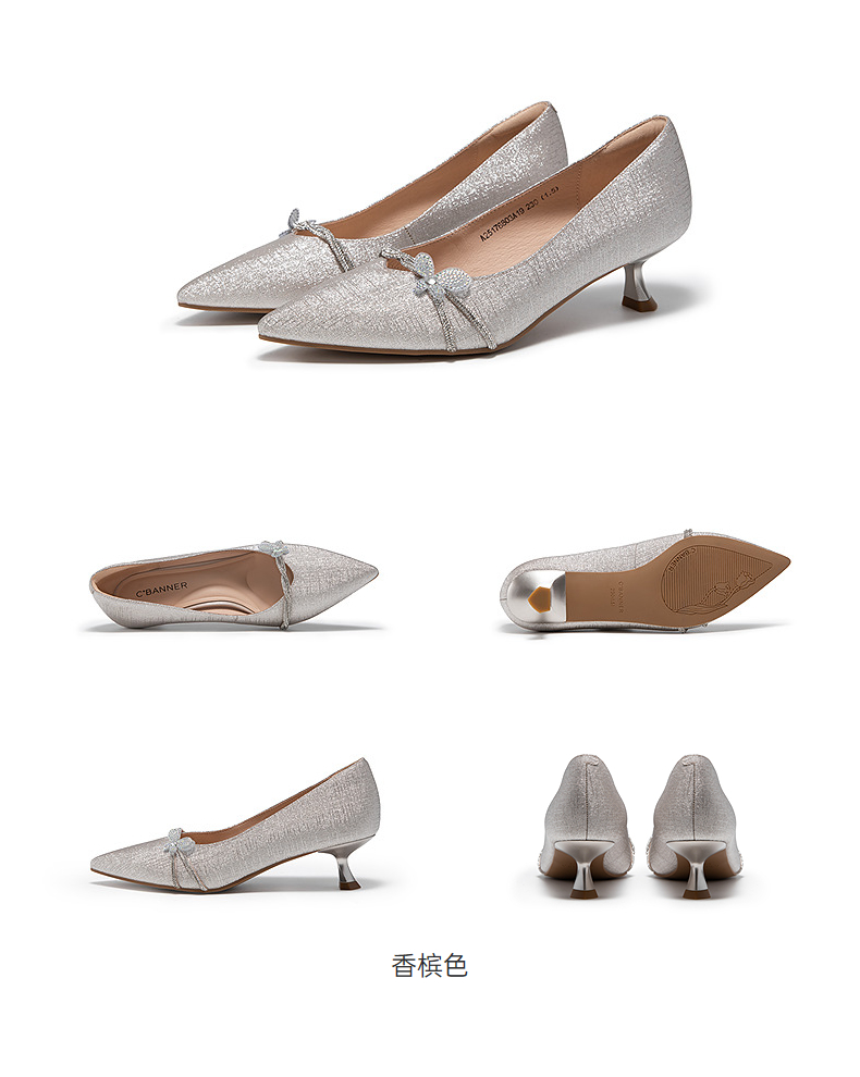 千百度小猫跟羊皮婚鞋高跟鞋女款新娘宴会法式单鞋A25176803