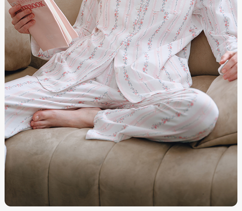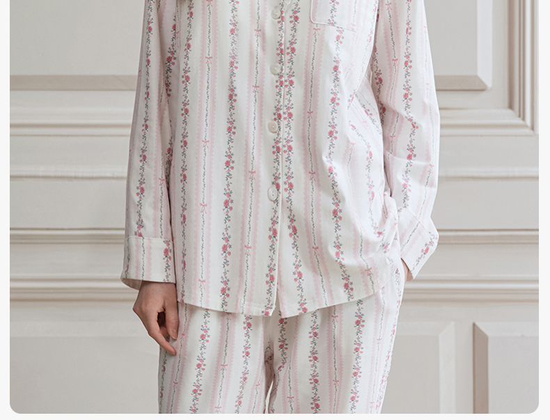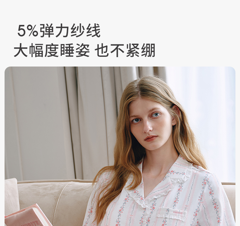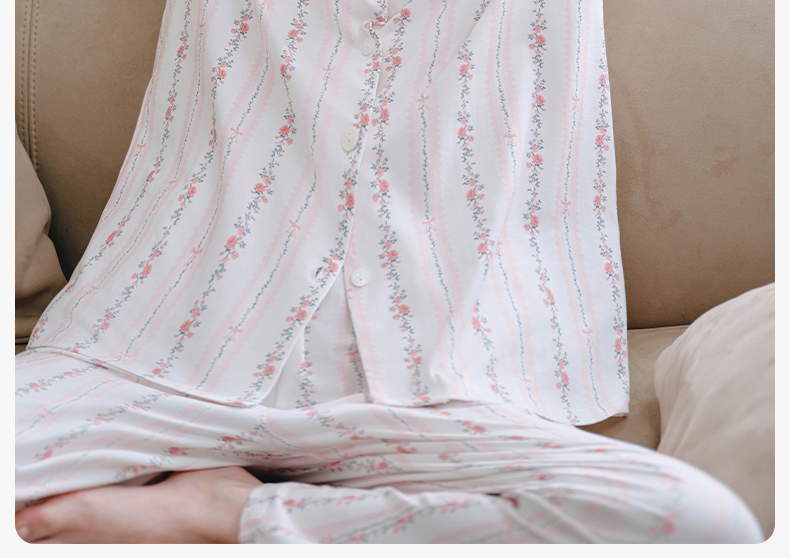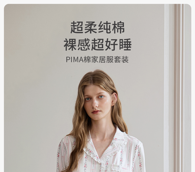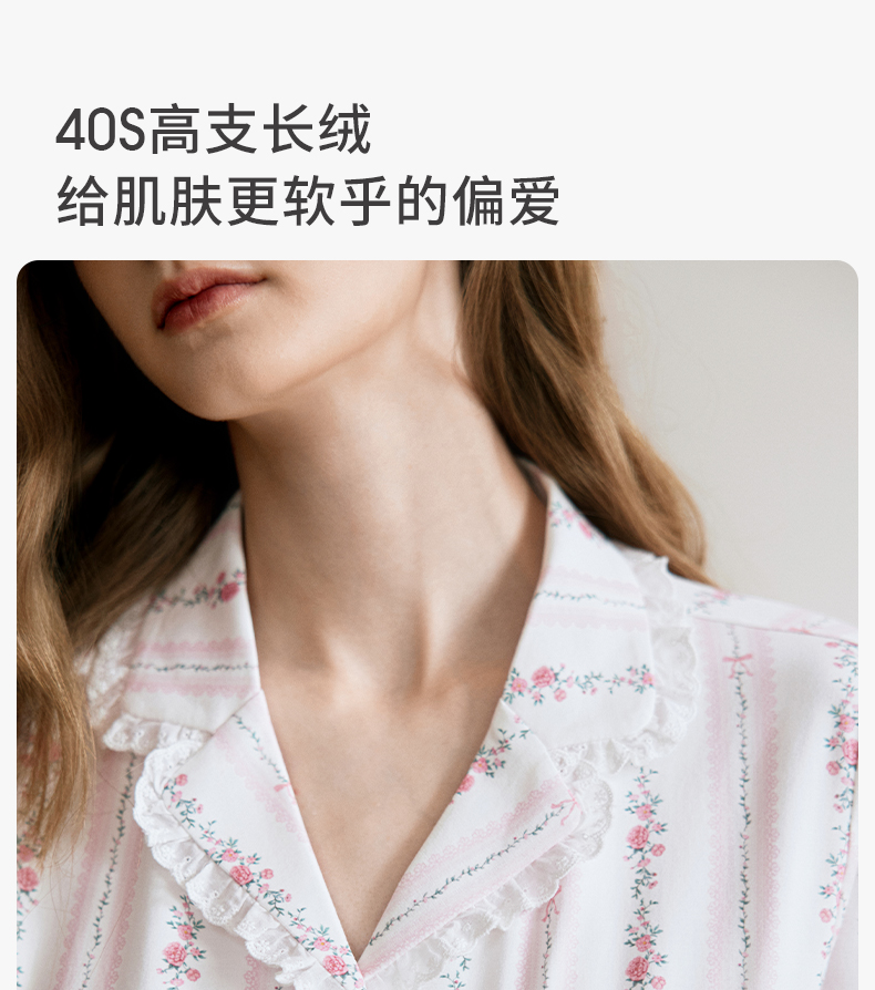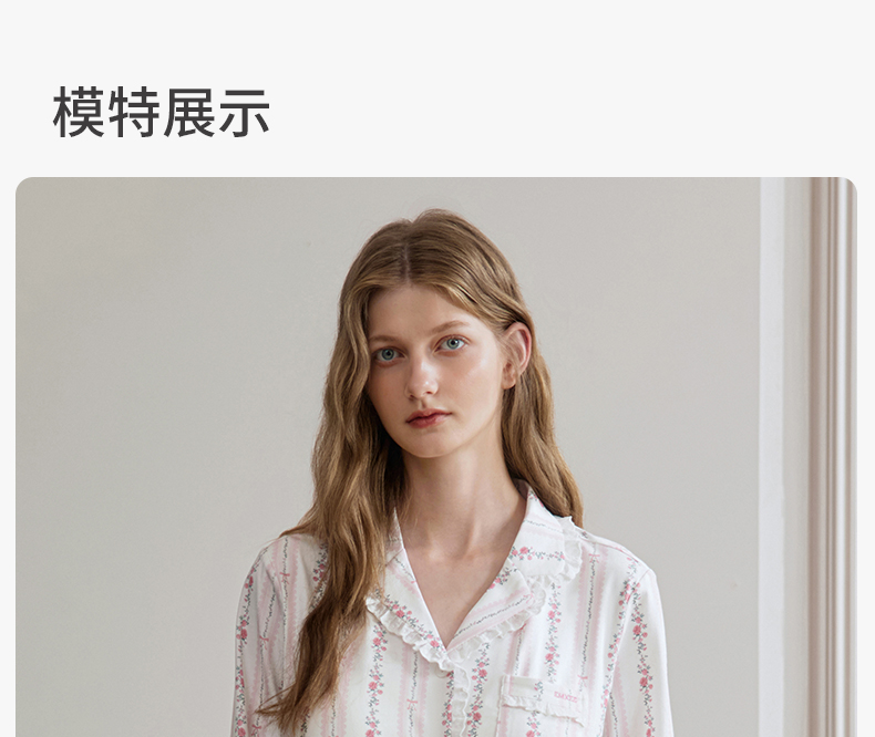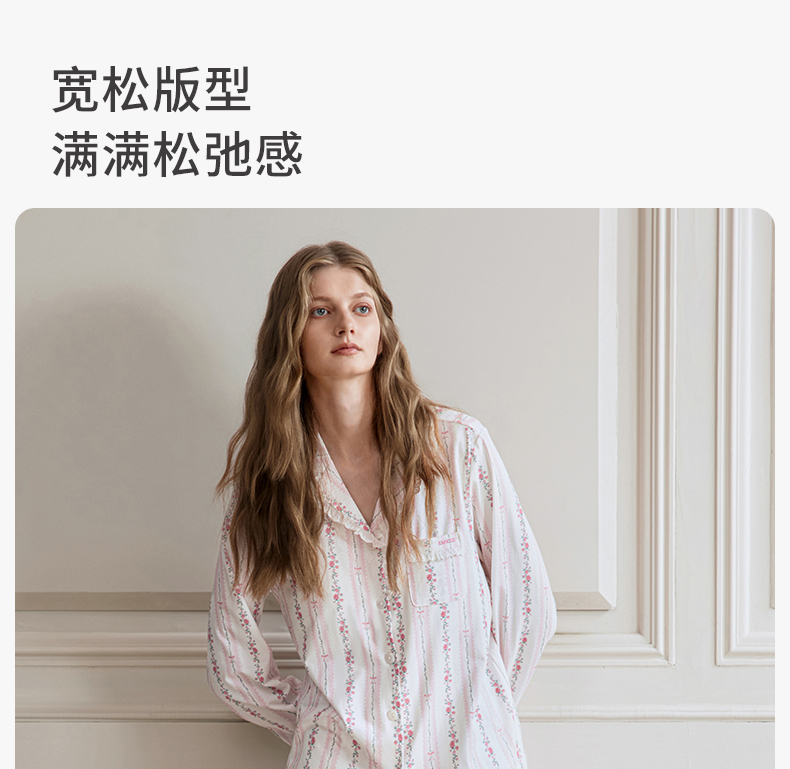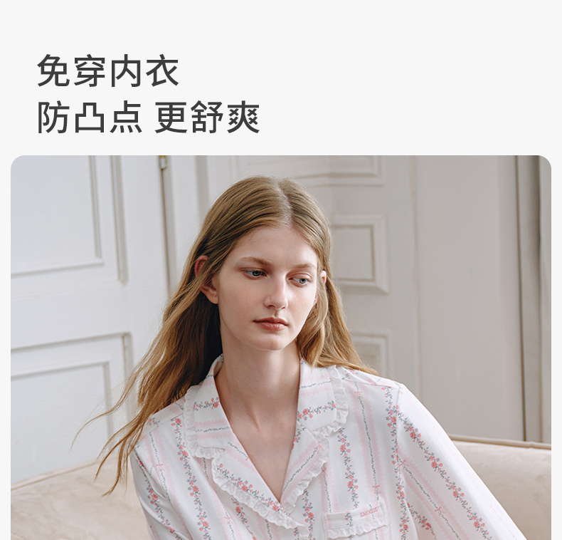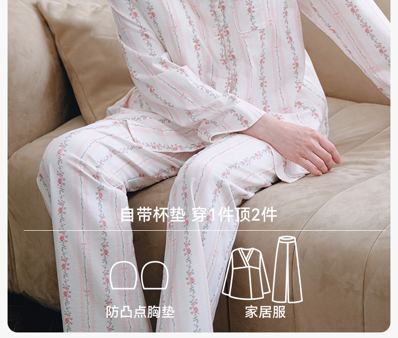【家居服专场】嫚熙夏季纯棉女士睡衣女款可拆卸胸垫柔软长袖家居服套装2025新款