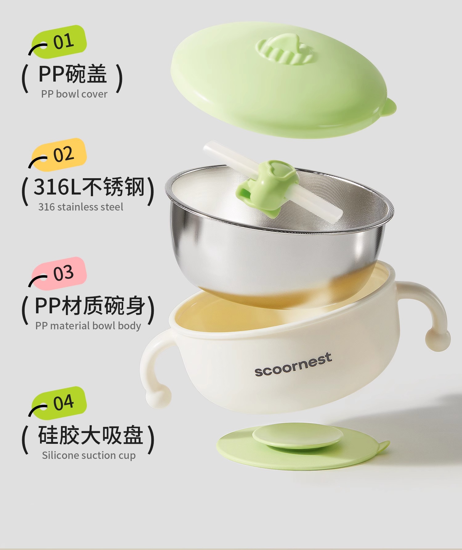 - Scoornest始终秉承给每一位宝宝送去科学的、关心的、创新的成长体验,通过提供商品和服务,使顾客形成守护、发展、巩固这种弥足珍贵的亲情的爱。