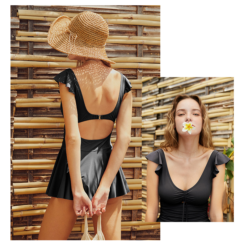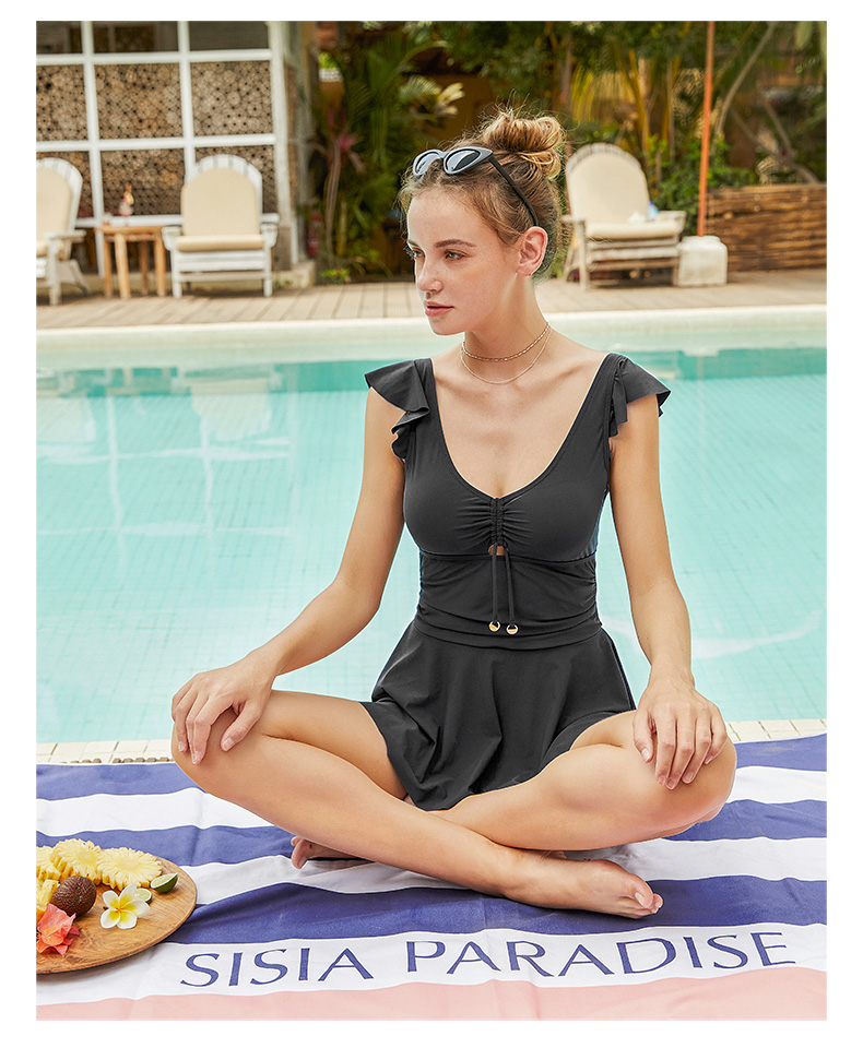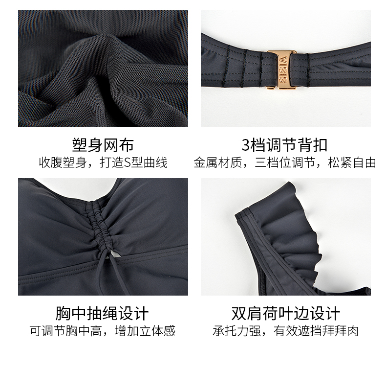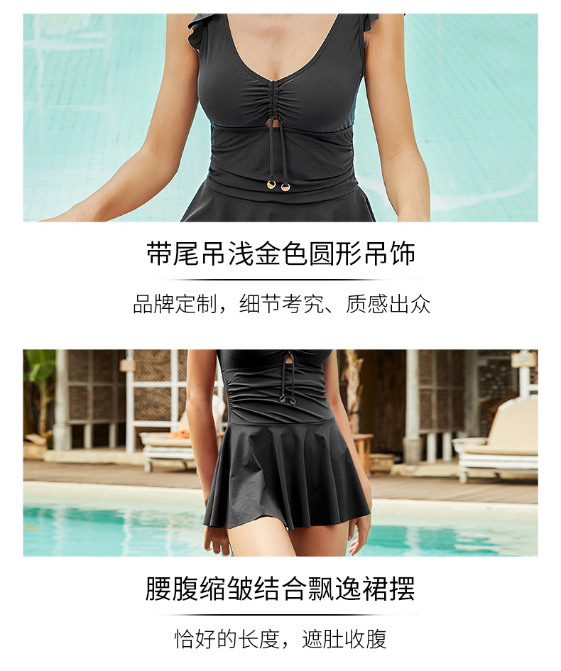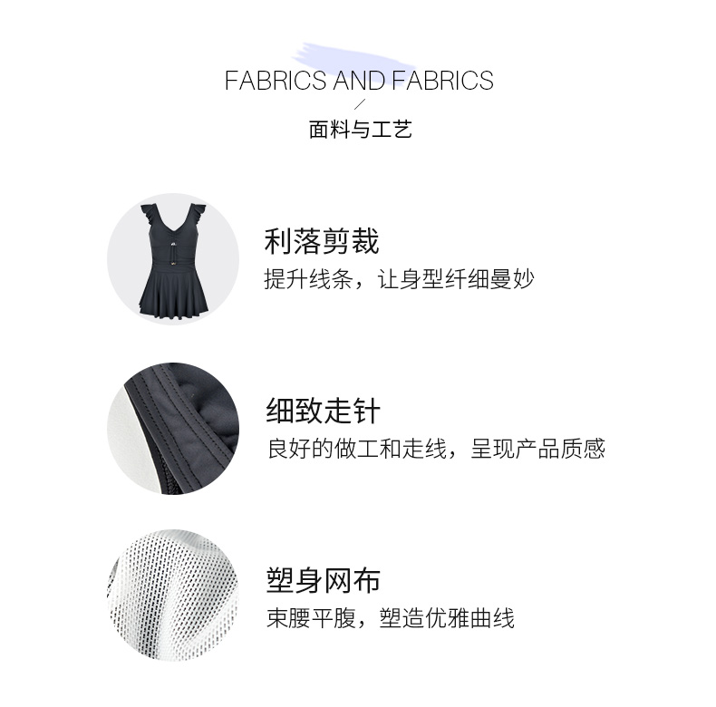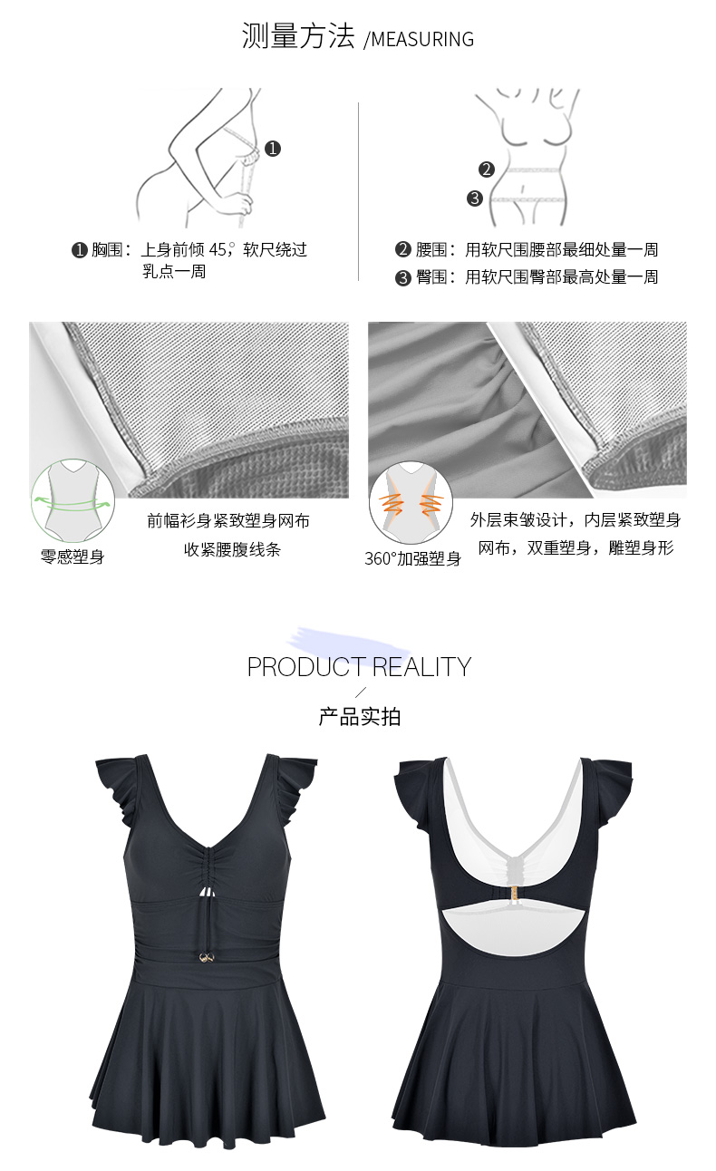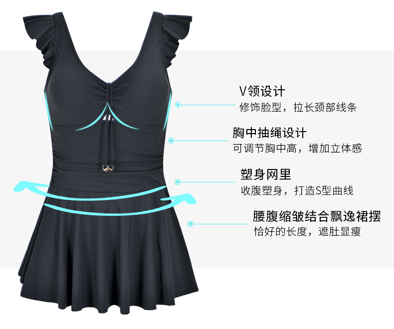 | 袖长: 无袖 | 款式: 裙式连体泳衣 |