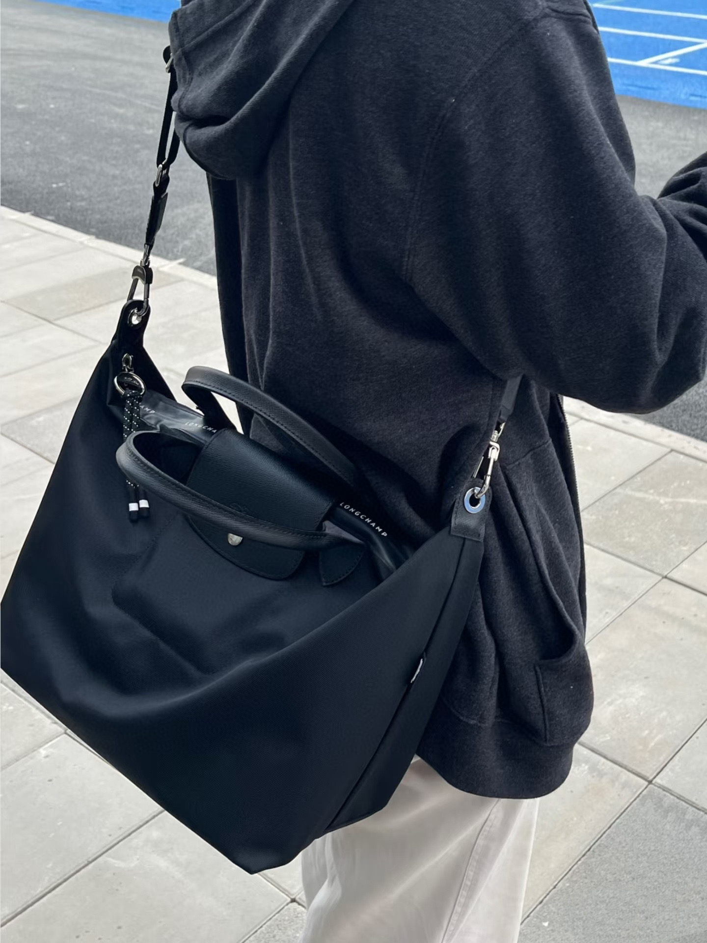 黑色,Neo加厚款这款超级实用又好看的饺子包手感属于尼龙面料防水又轻巧还带有哑光的质感节