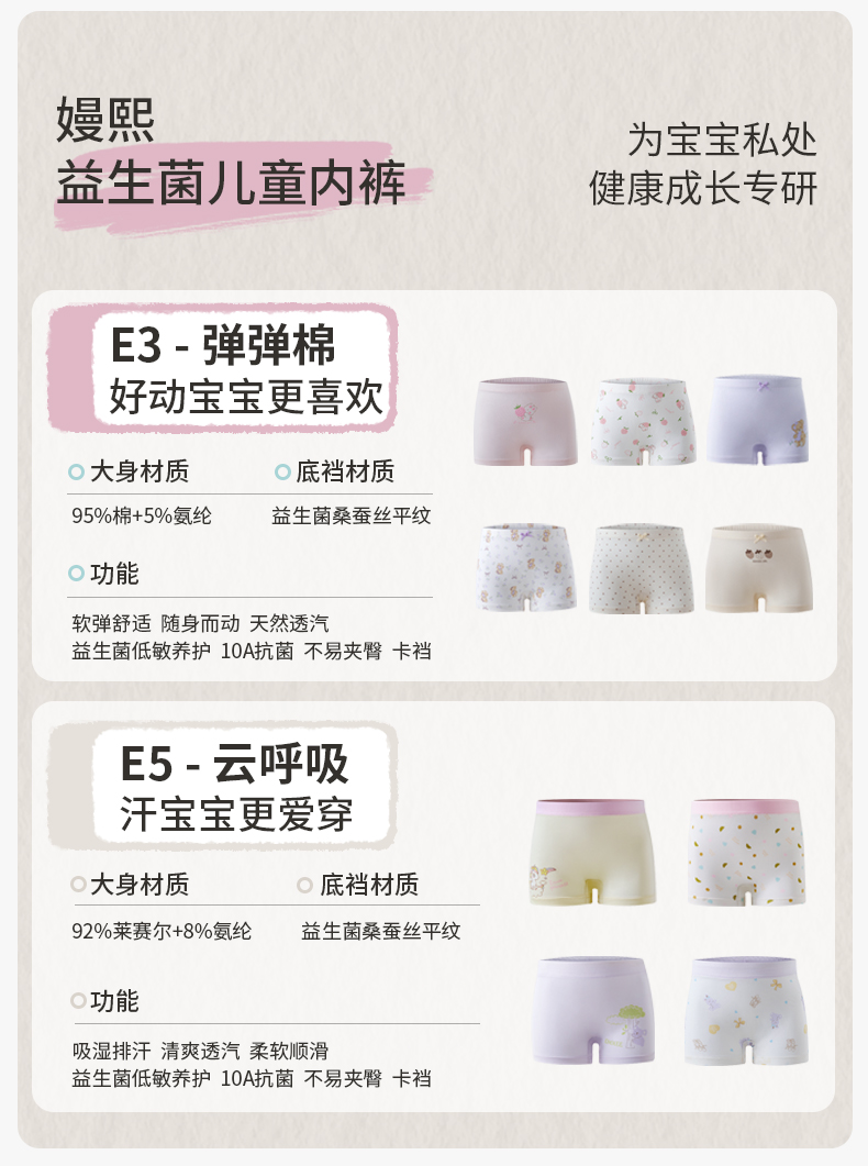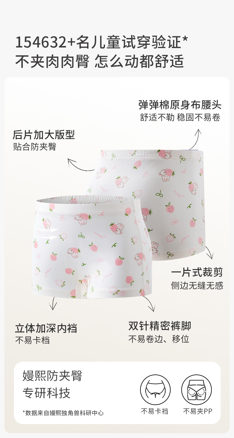 【婴童服配】嫚熙儿童弹弹棉质内裤男女童四角短裤宝宝不夹屁屁平角裤