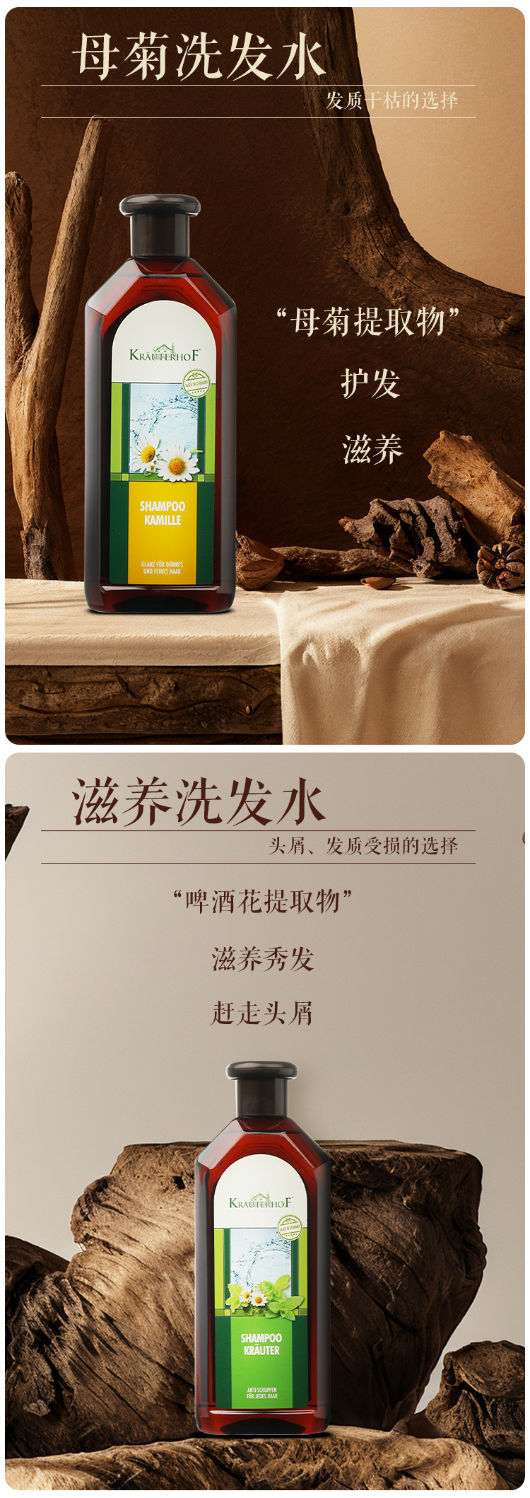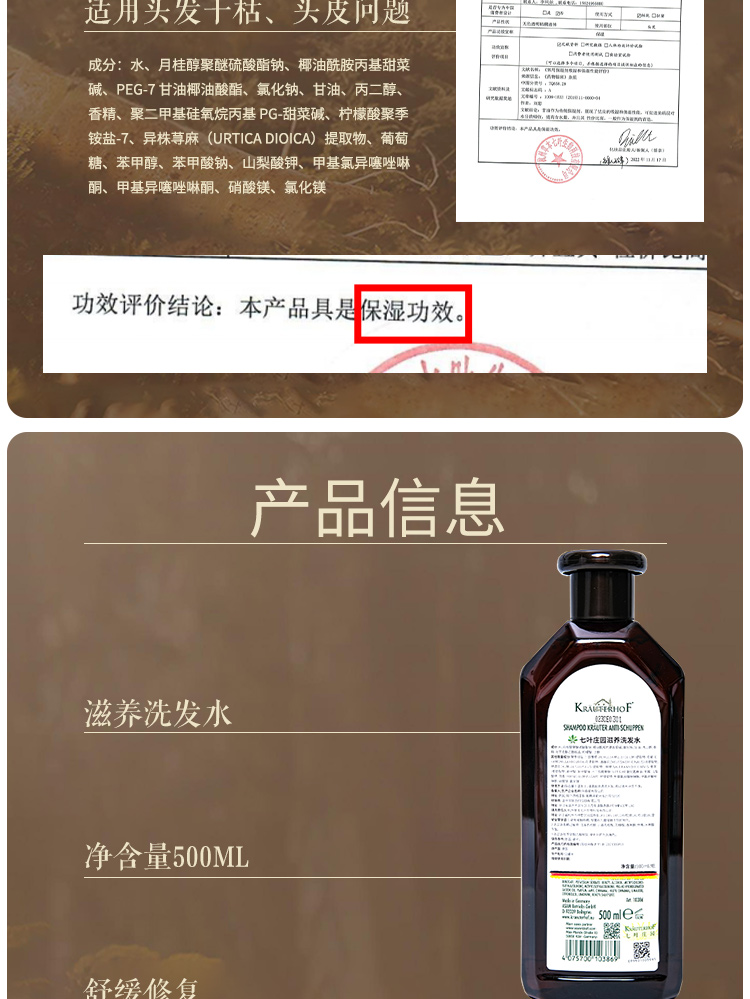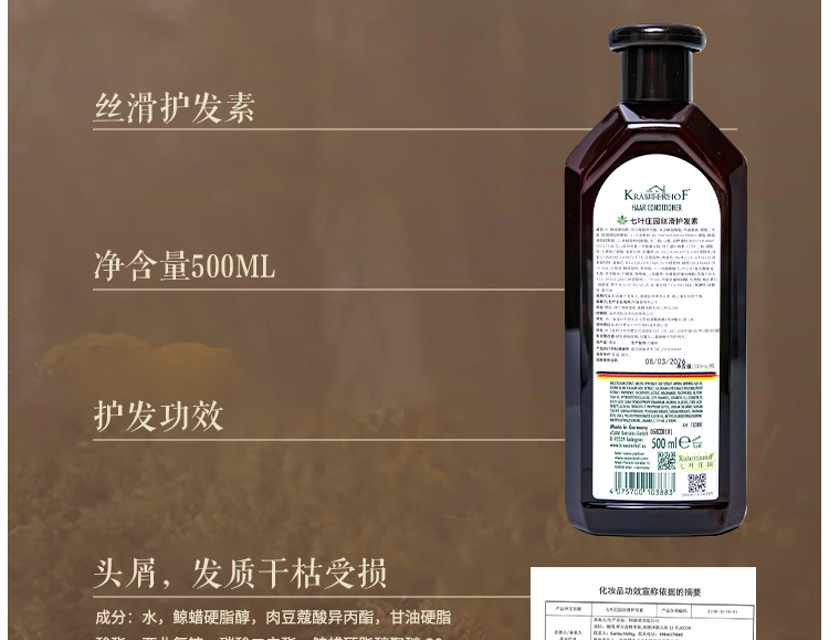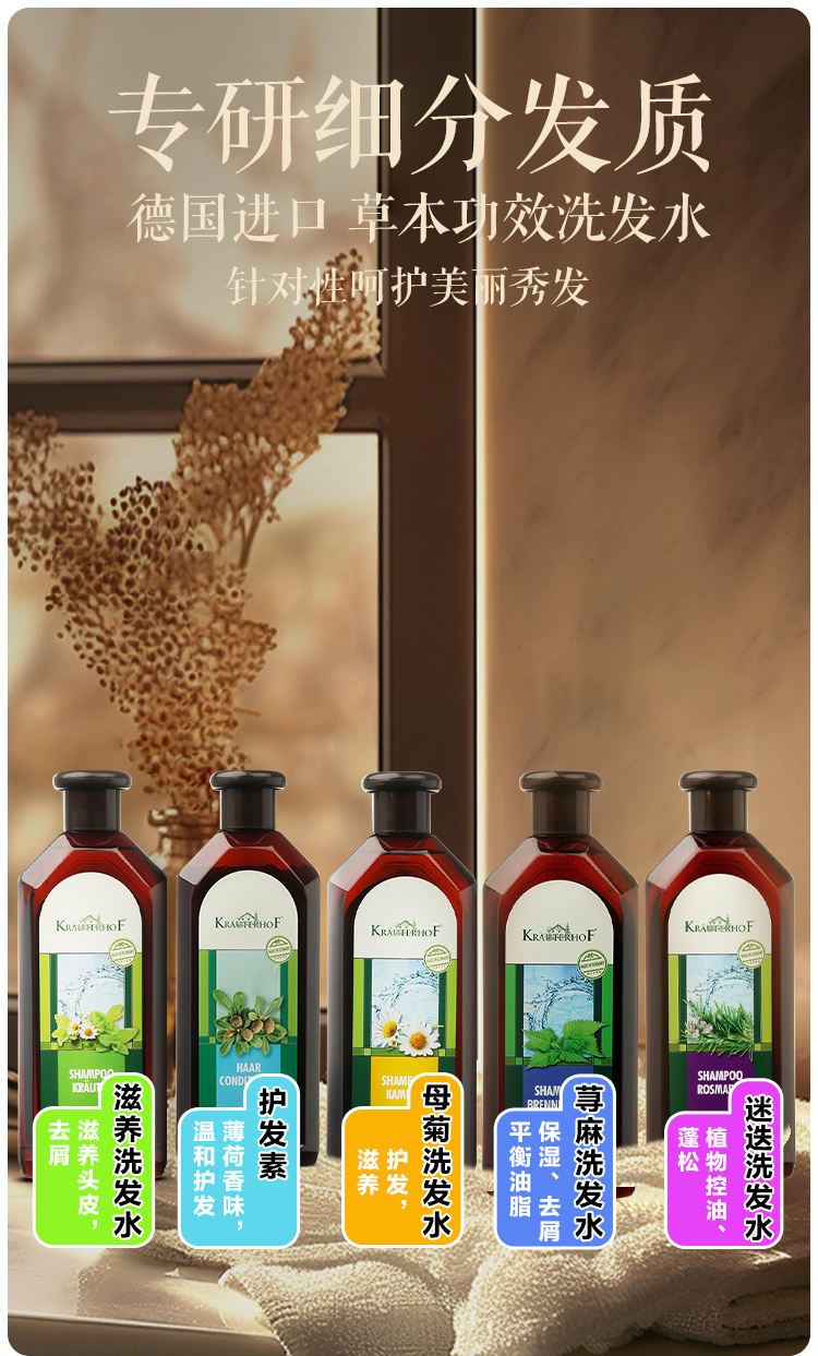 Krauterhof七叶庄园草本控油去屑止痒无硅油洗发水男女同款德国原装进口