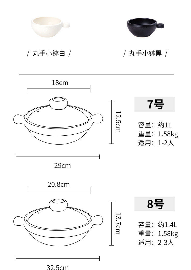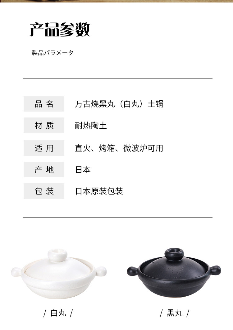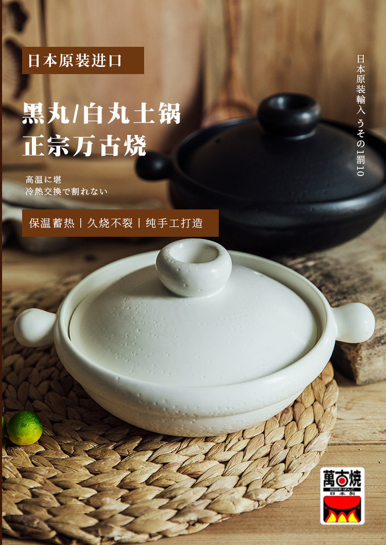 【日本进口万古烧嘟嘟锅】日本万古烧土锅黑丸白丸耐热砂锅嘟嘟锅丸手锅日式汤锅陶瓷锅炖锅