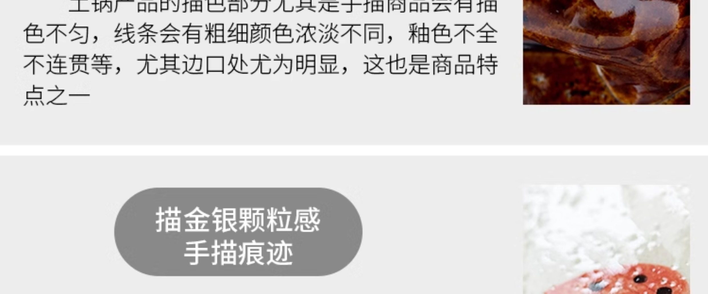 2、细节展示:材质、工艺、做工等;