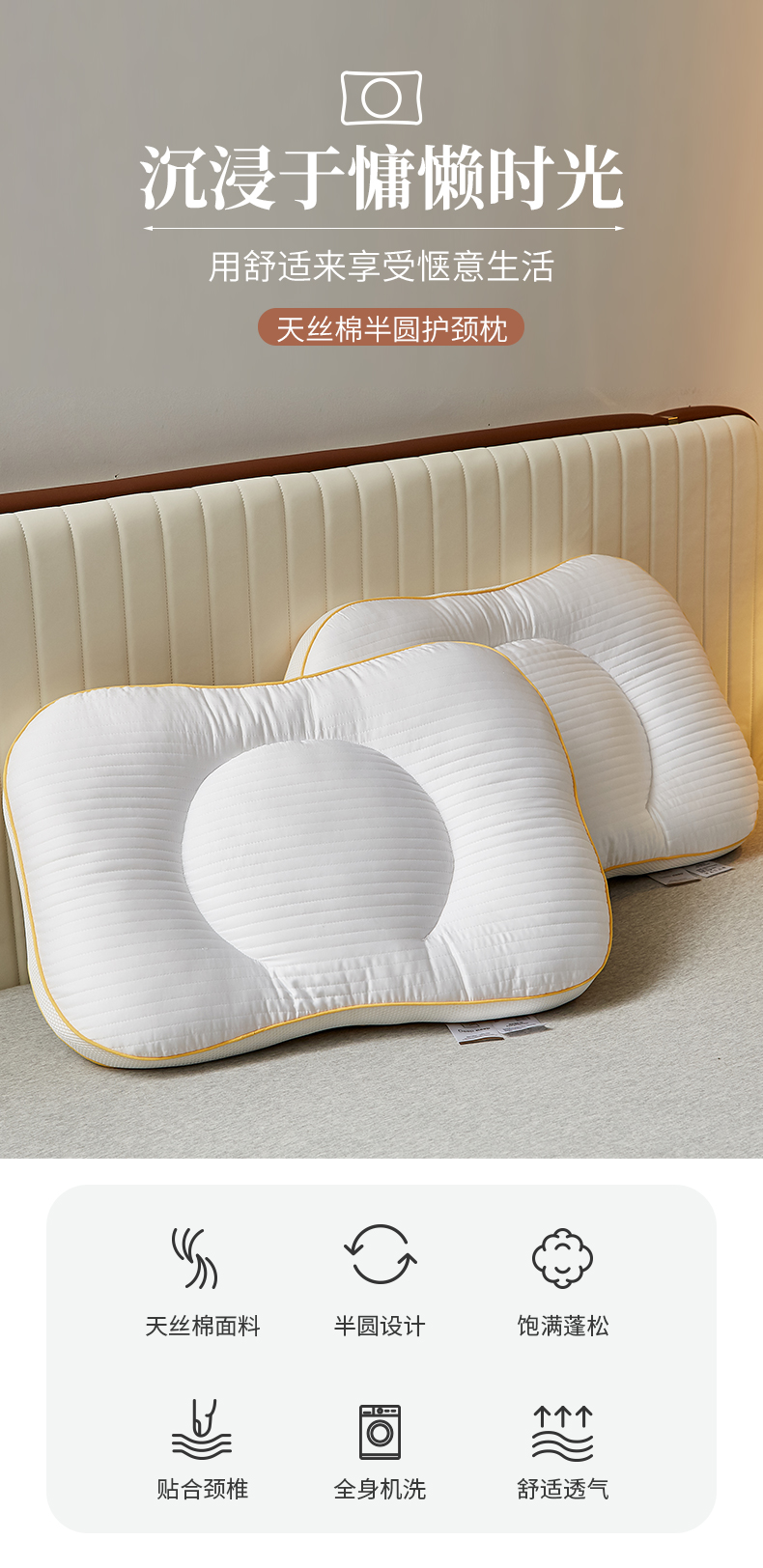 【下架】自然醒天丝棉半圆枕芯枕头助睡眠护颈椎修复颈椎睡眠枕单人防螨星级酒店专用枕头芯LK