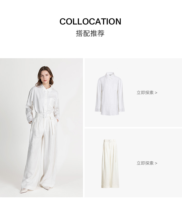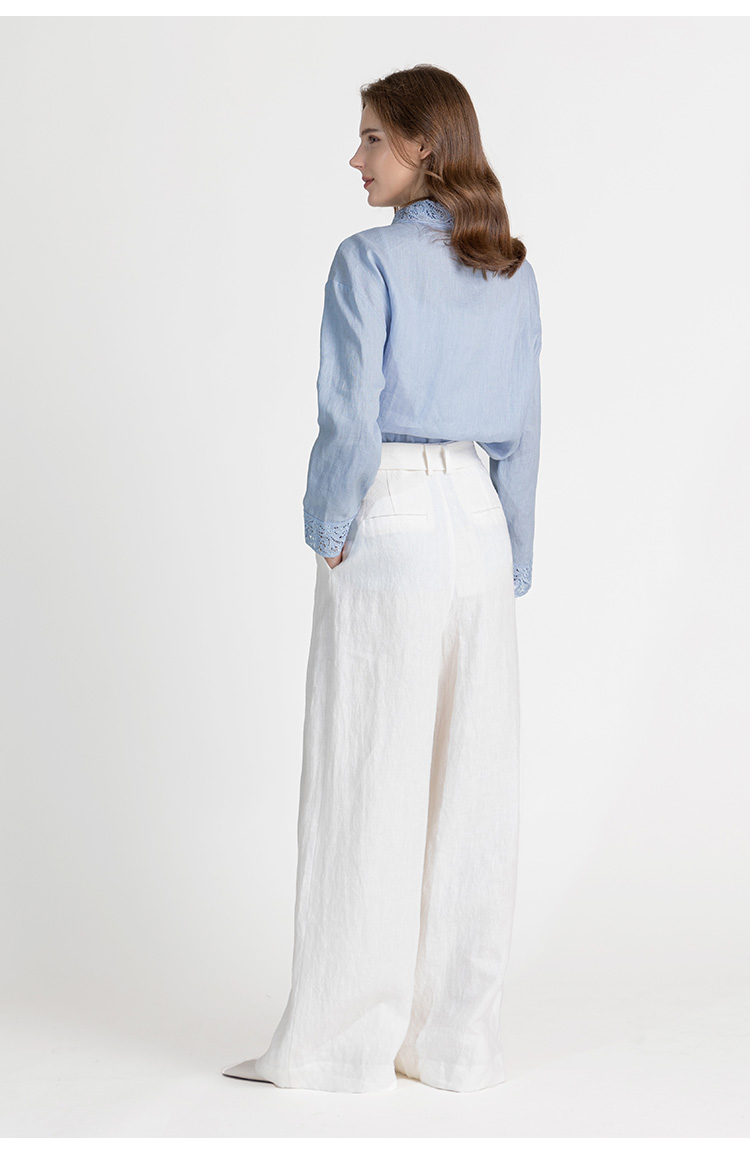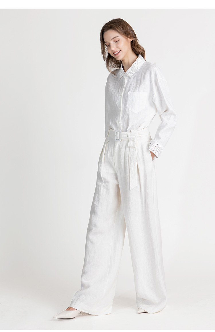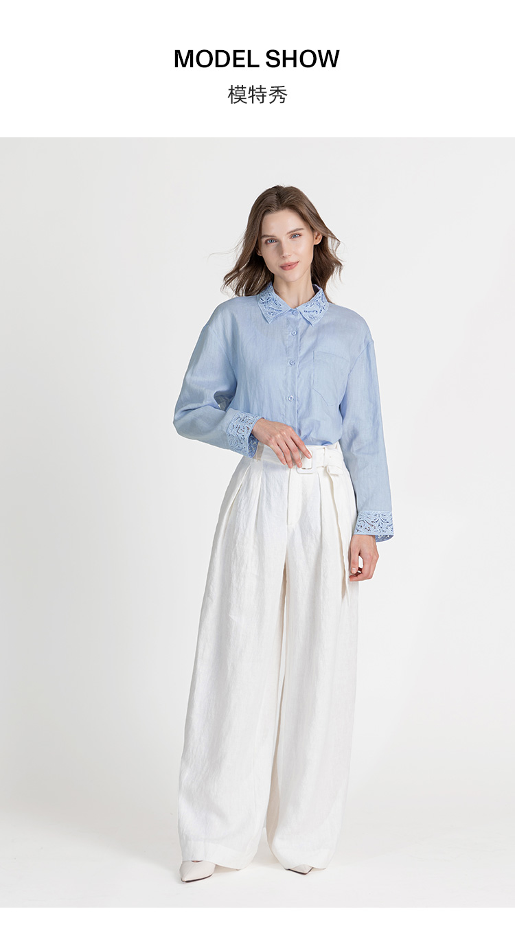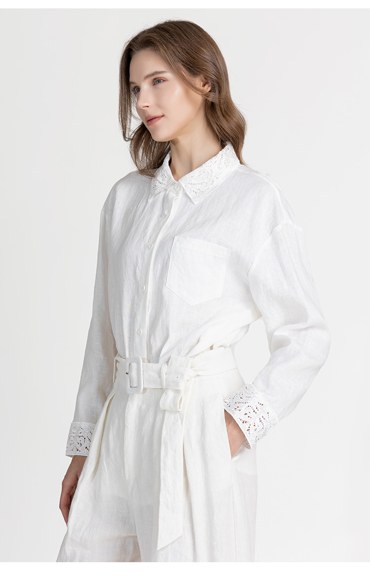 LIZZY春夏精致亚麻刺绣领百搭通勤长袖衬衣8132