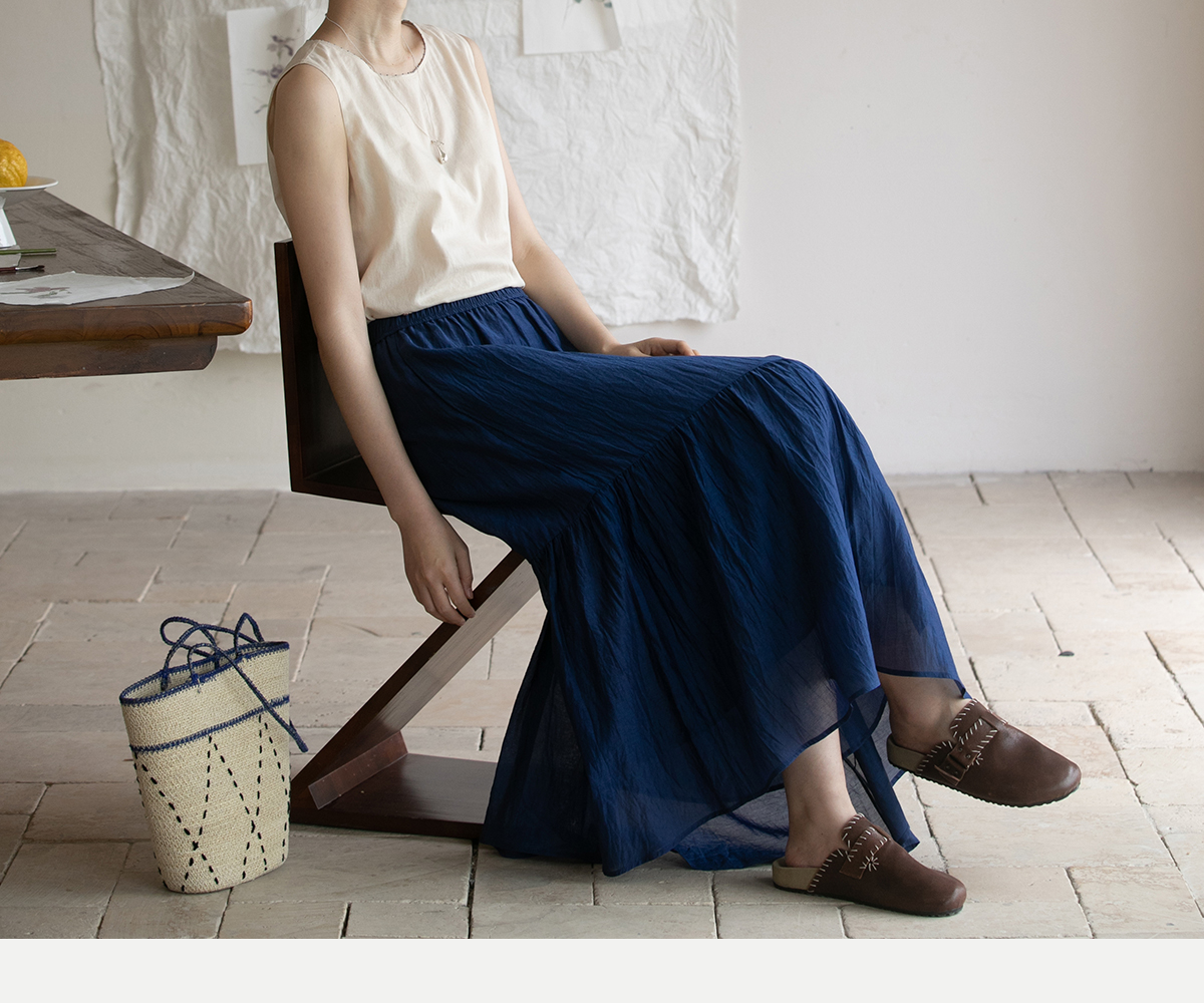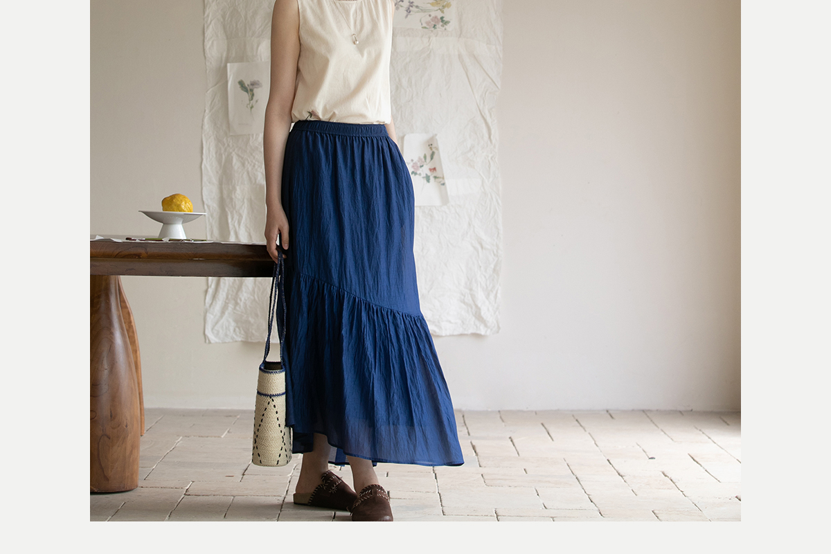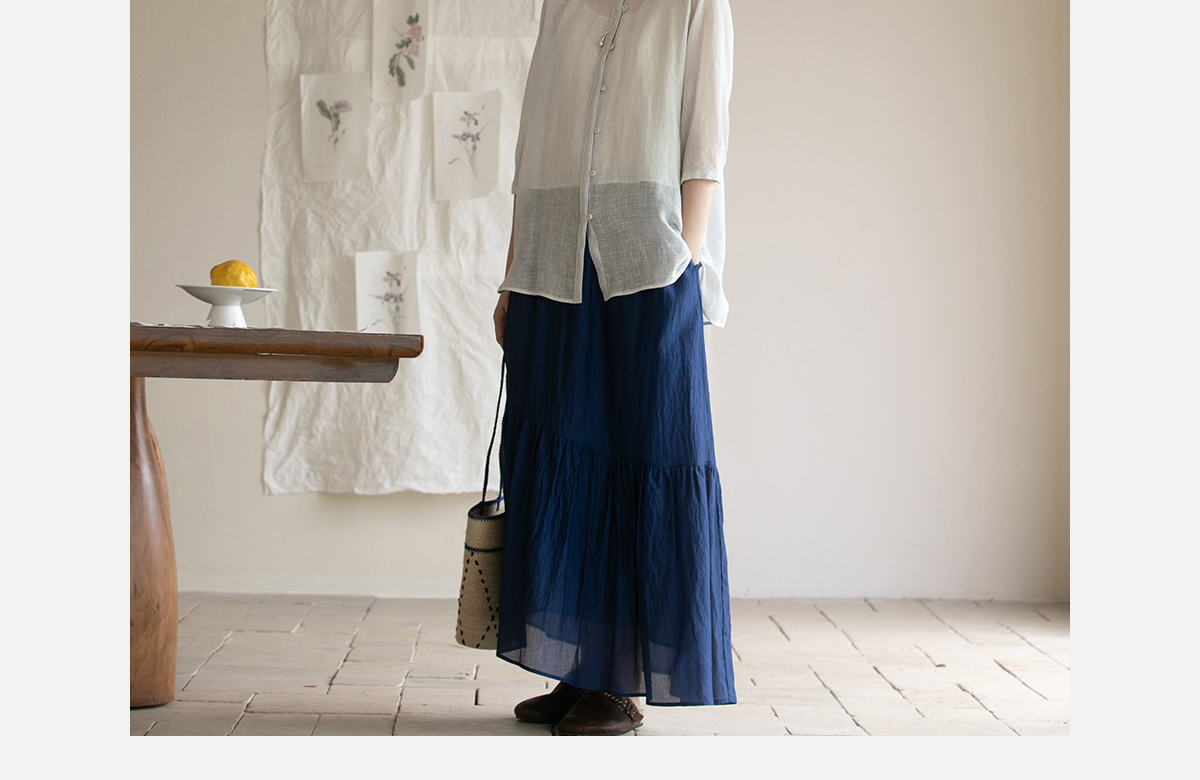 牧衣游原创 丝棉净色半裙设计感不规则宽松百搭半身裙 微风与秋