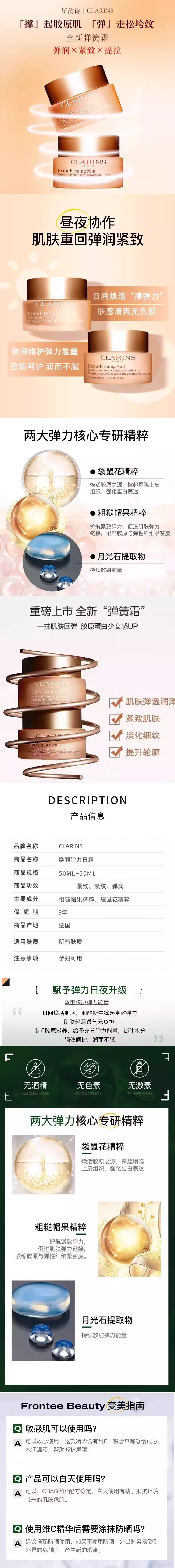 【春季焕新】【香港免税店🇭🇰】Clarins娇韵诗焕颜弹力日霜晚霜50ml 面霜深层滋润保湿补水 · 香港直邮