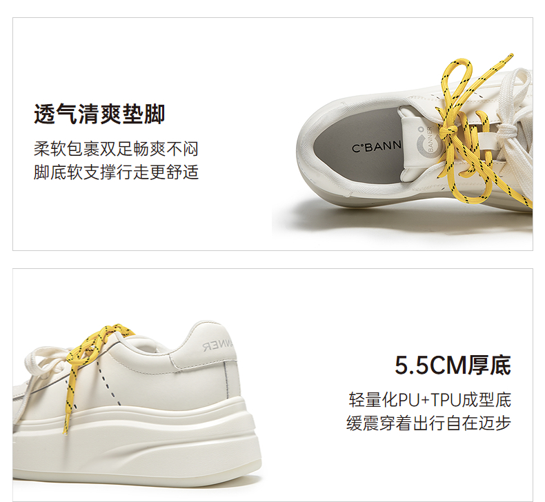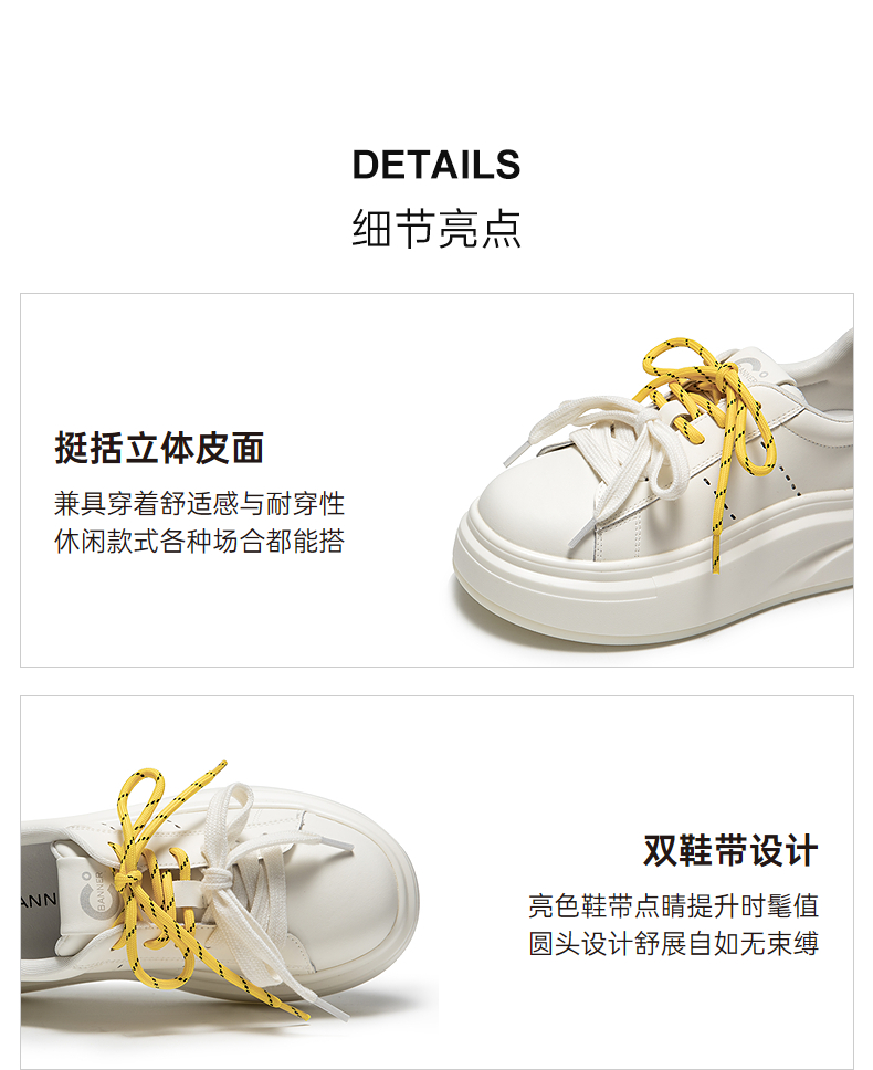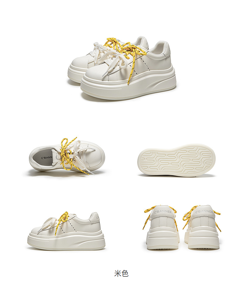 【上新】千百度双鞋带厚底增高板鞋女2026春季新款透气运动休闲鞋小白鞋A26110102