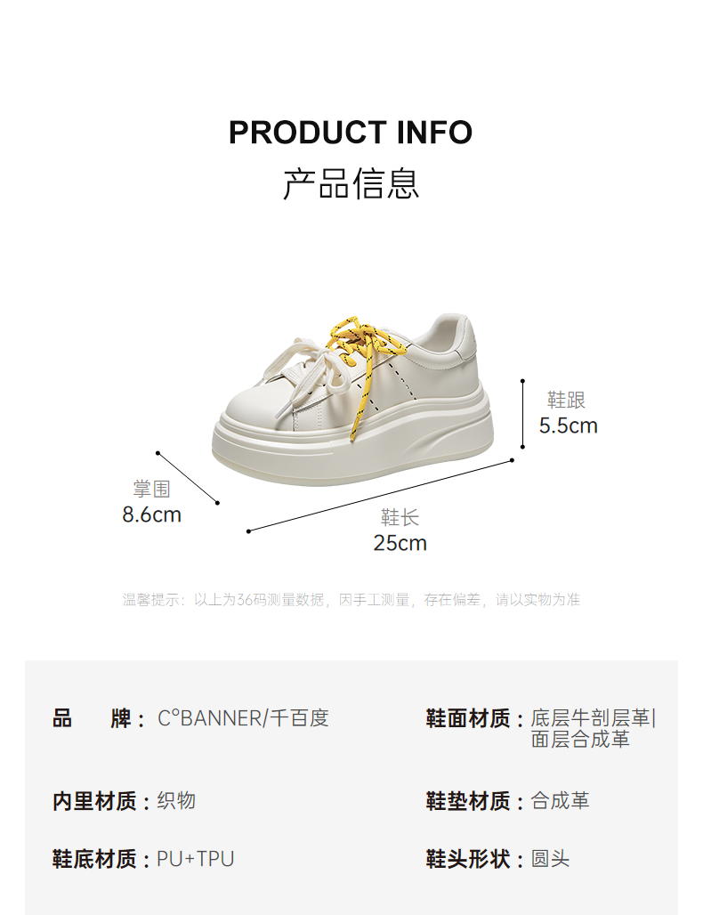 千百度厚底小白鞋休闲板鞋女款增高网面运动休闲鞋A25329701