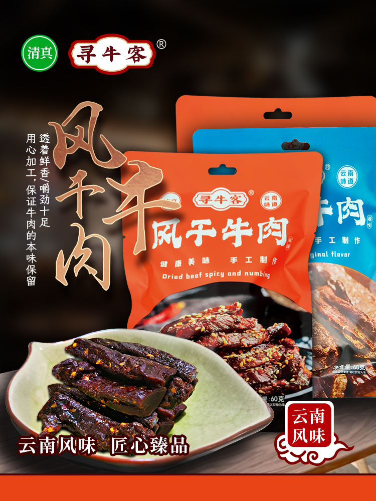 云南清真绿星斋 寻牛客 风干牛肉 原味麻辣味 60克装 开袋即食