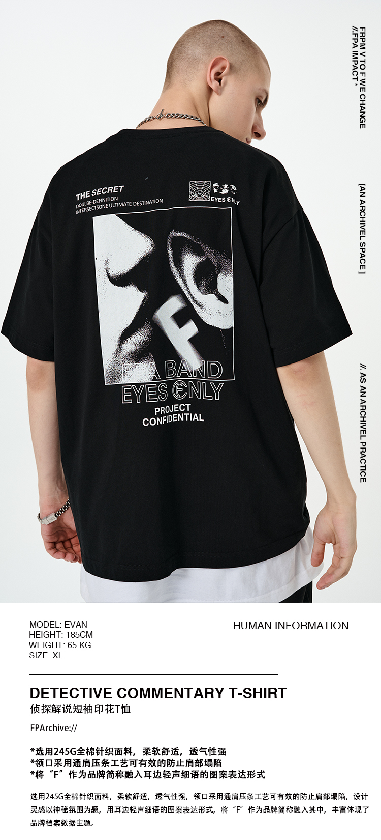 FPA(VENGETICE) 侦探解说短袖印花T恤 国潮嘻哈宽松休闲夏季男