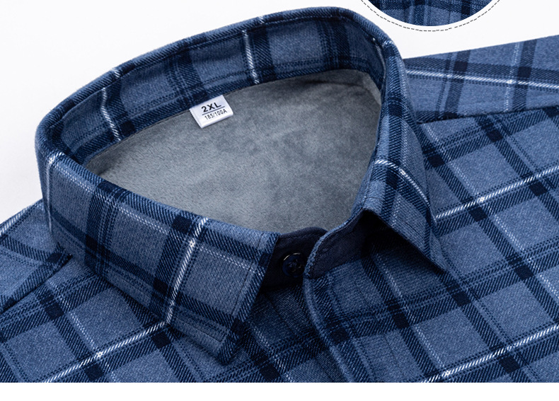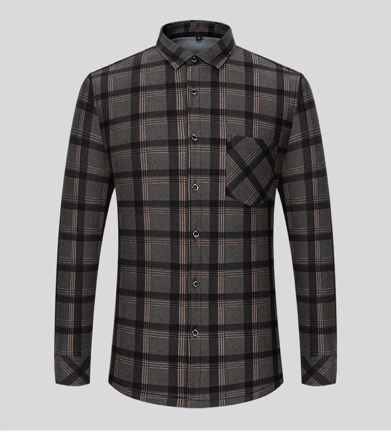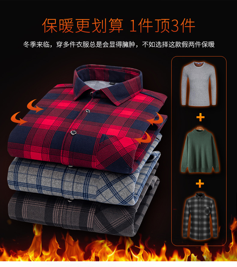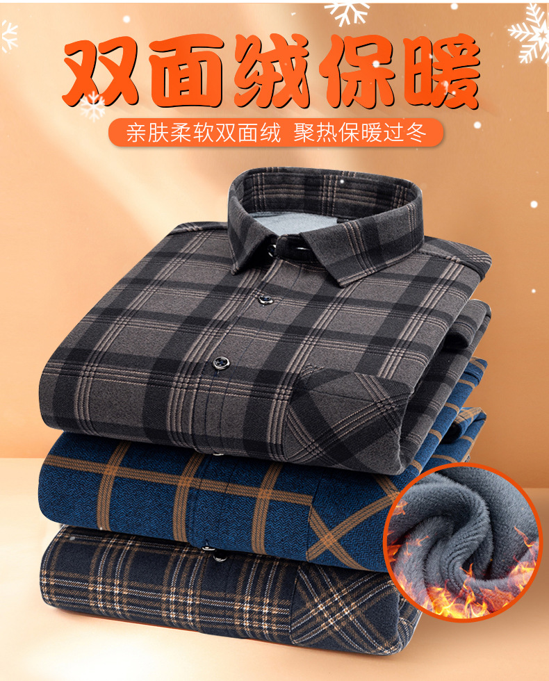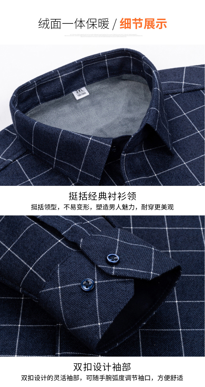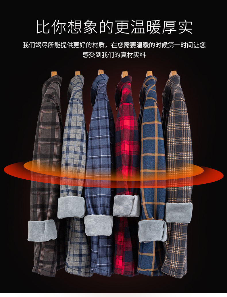 严选加绒加厚磨毛格子衬衫男长袖潮流衬衣中青年保暖上衣秋冬休闲衬衫