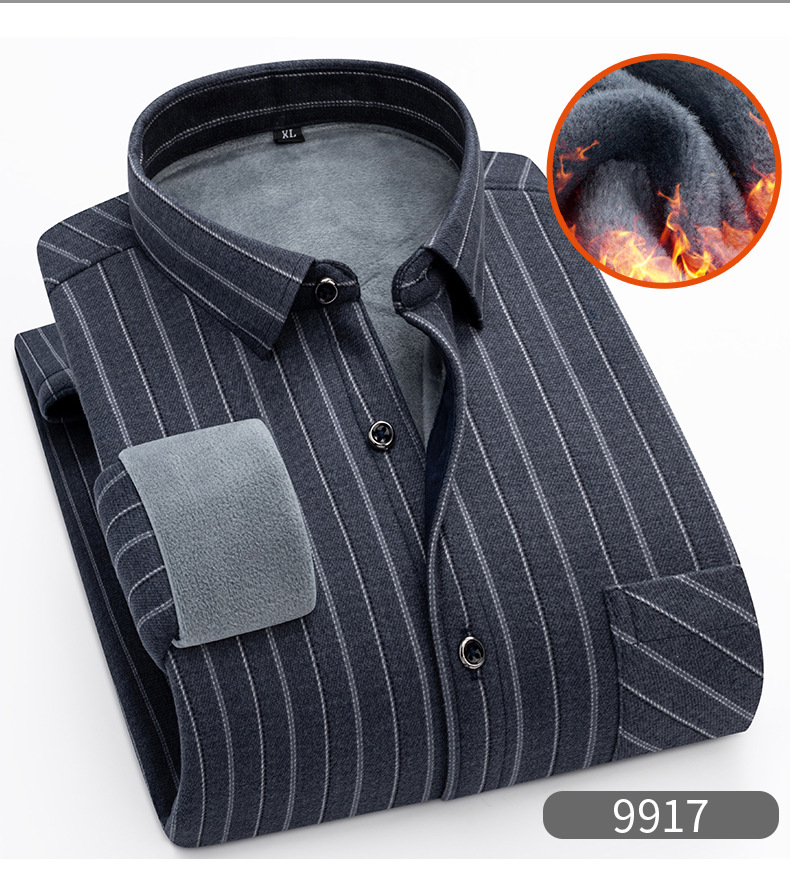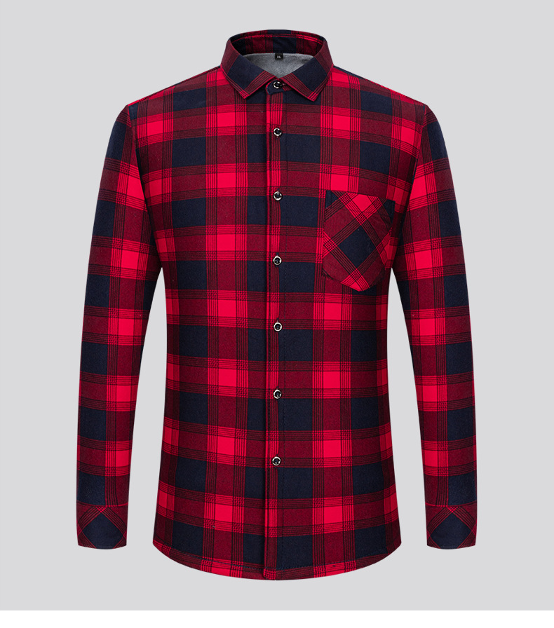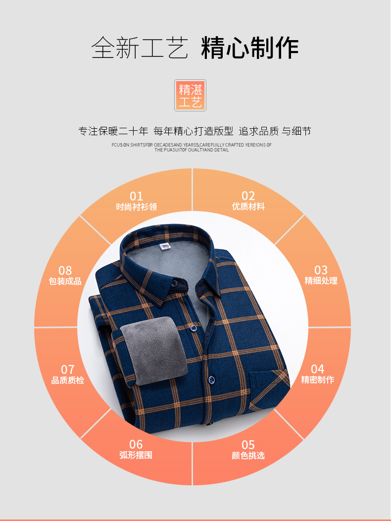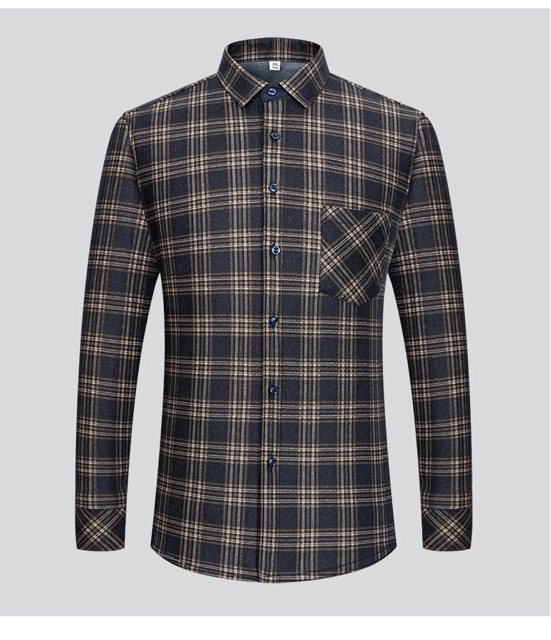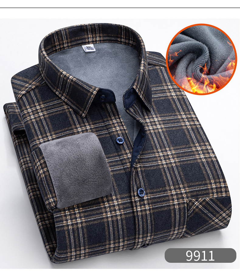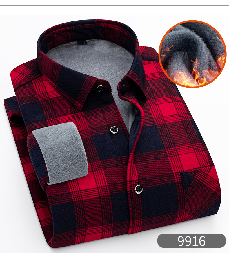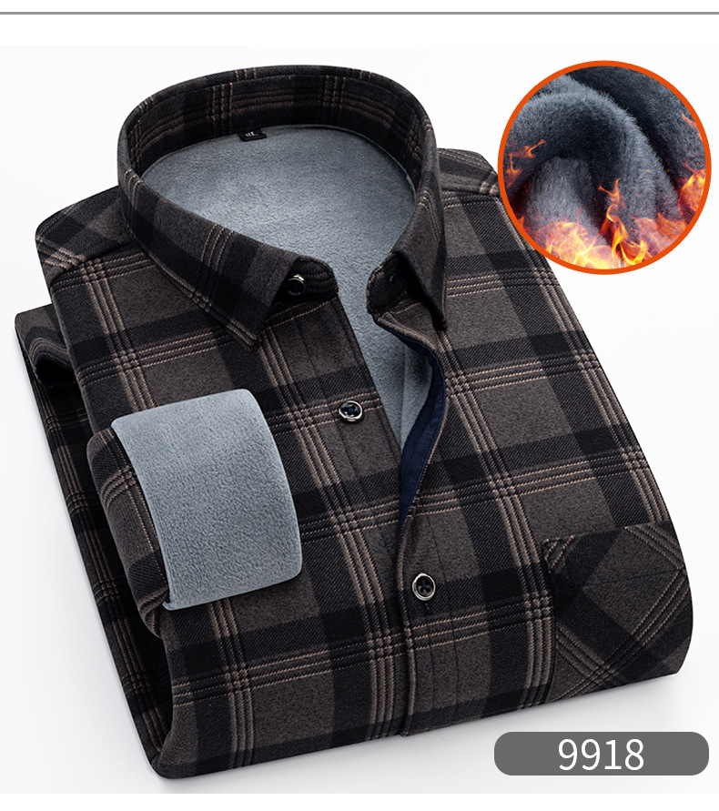 严选加绒加厚磨毛格子衬衫男长袖潮流衬衣中青年保暖上衣秋冬休闲衬衫