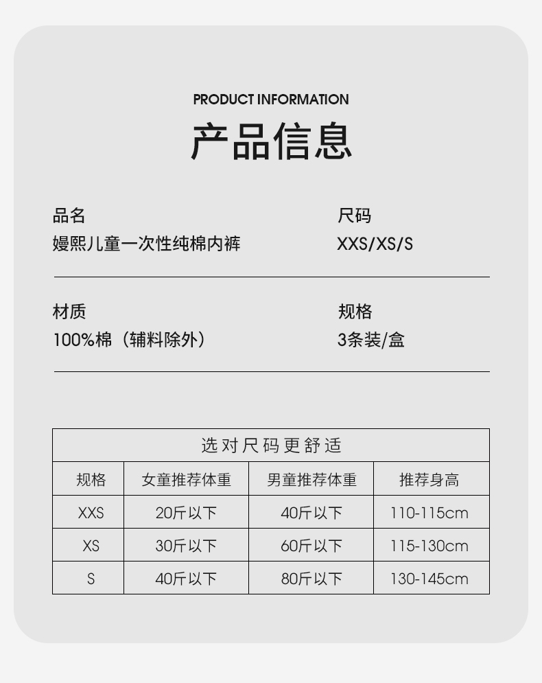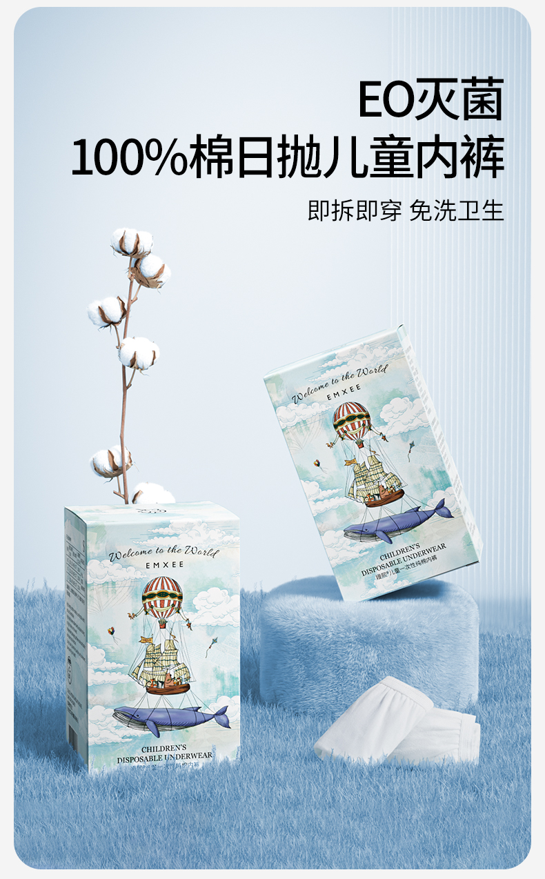 【一次性用品】EMXEE嫚熙儿童一次性纯棉内裤(3条/盒)(男童)