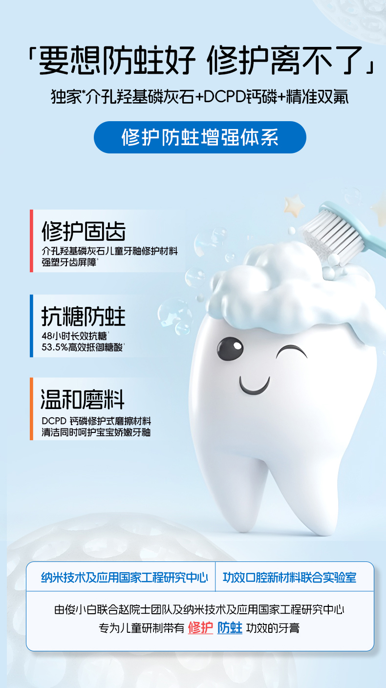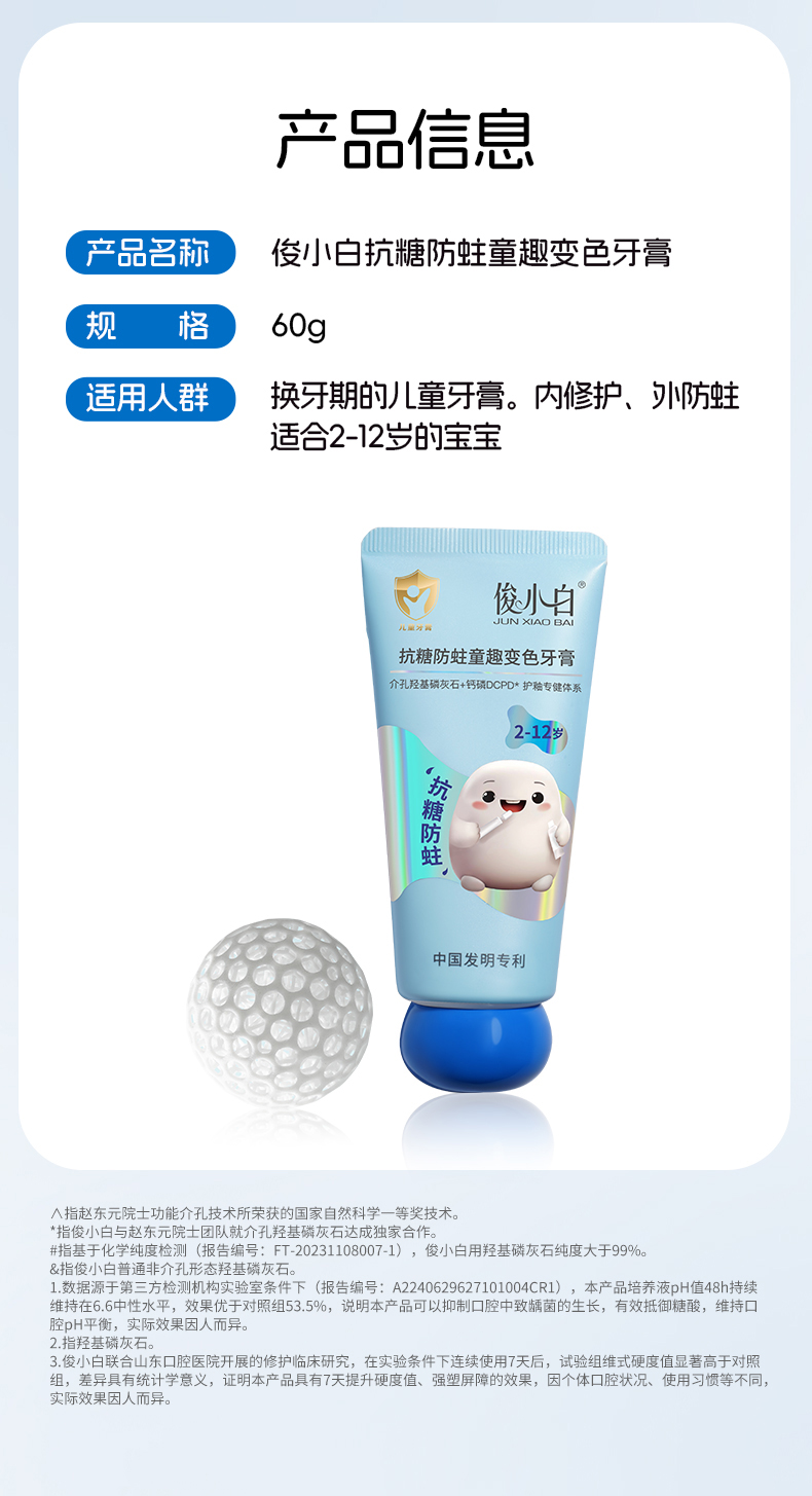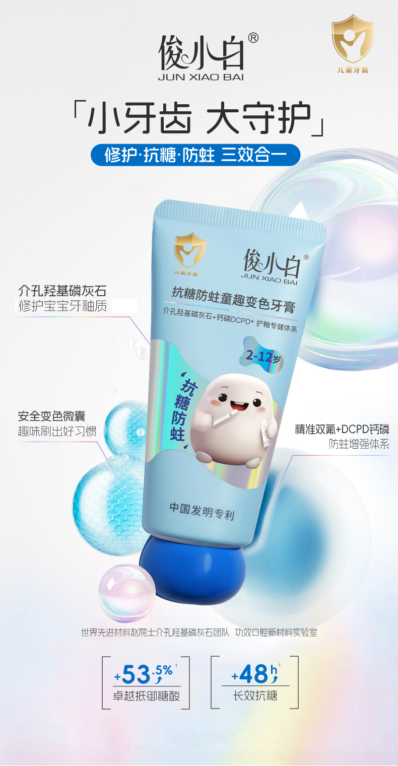 俊小白密集修护牙膏/釉龈双护专健牙膏/儿童抗糖防蛀童趣牙膏 (2-12岁换牙期)
